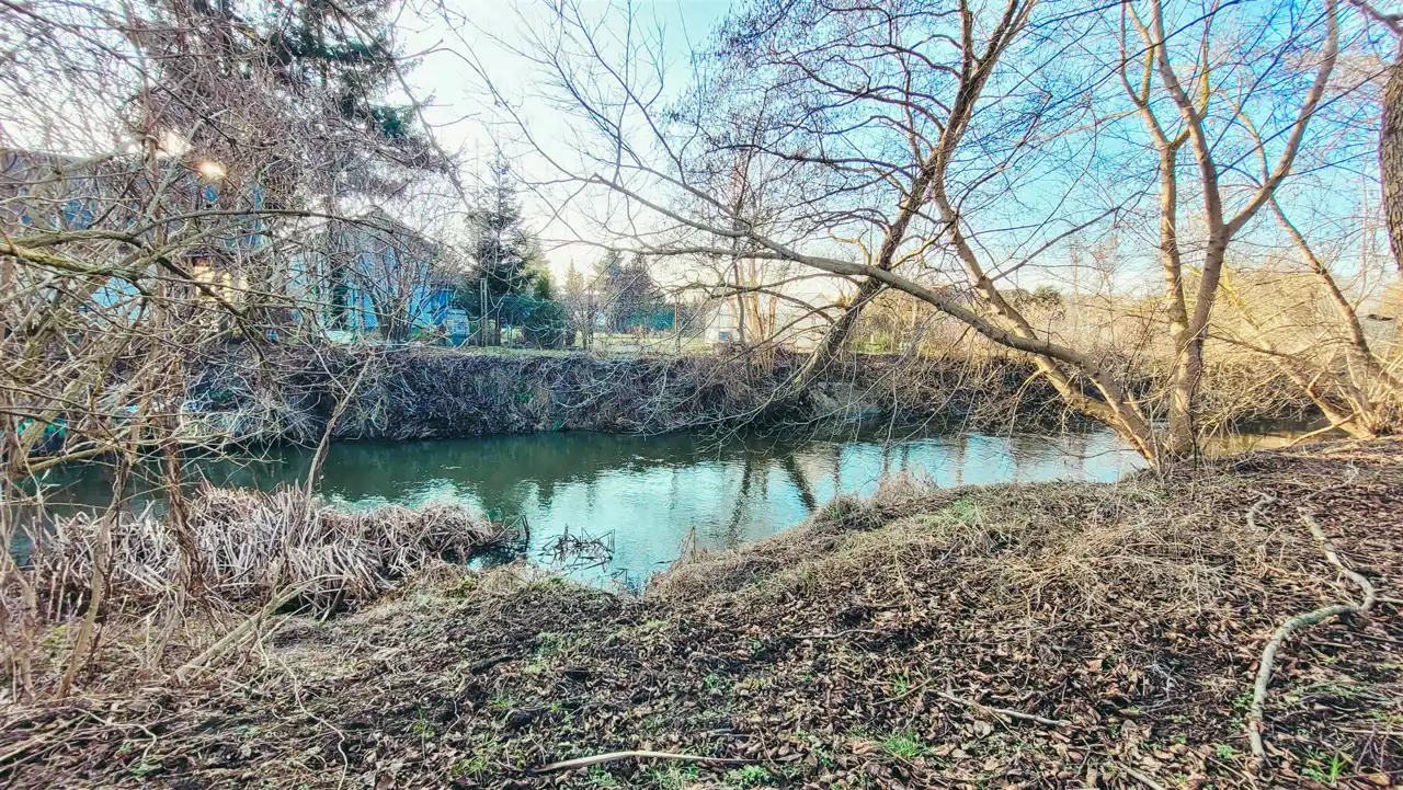 a) zadbane wyjście nad rzekę Zgłowiączkę – de facto powiększa powierzchnię działki o kolejne 200 m.kw.. Za płotem założony trawnik, pieńki – siedziska, kompostownik, rabaty kwietne – teren niedostępny dla ludzi z zewnątrz, jedyne towarzystwo to bażanty, zające i czasem sarenki ;)