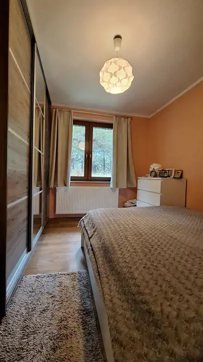 Spokojna okolica, zabudowa mieszkaniowa w okolicy. W okolicy szkoła, sklep, dużo zieleni oraz bezpośrednie sąsiedztwo lasu.