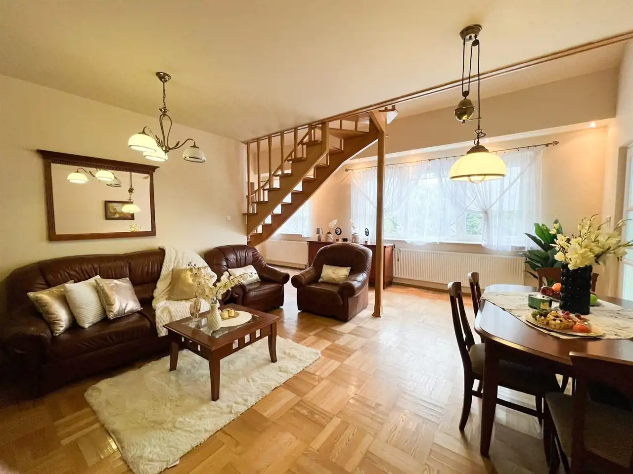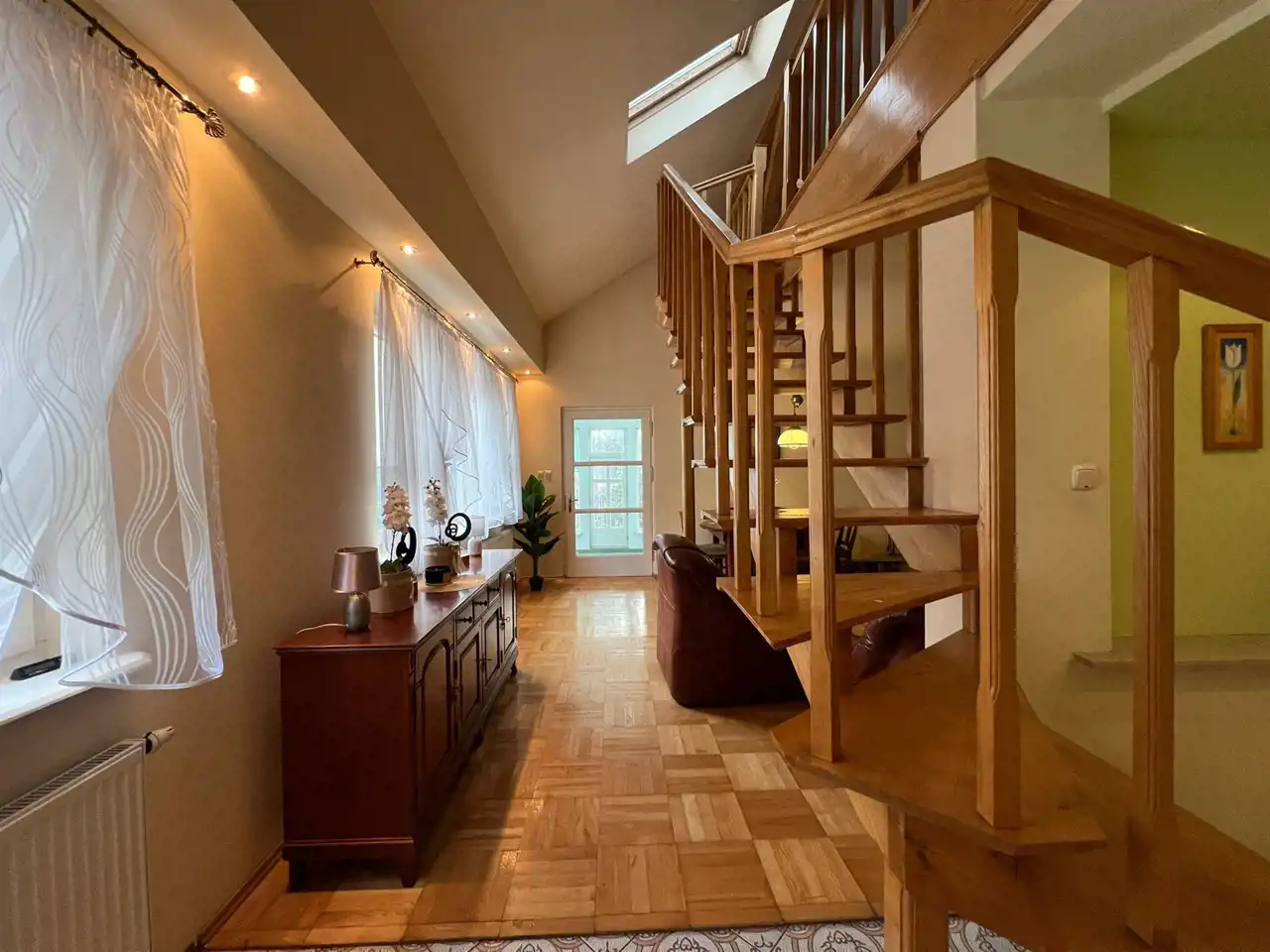 Dom jest bardzo przestronny, słoneczny i klimatyczny.