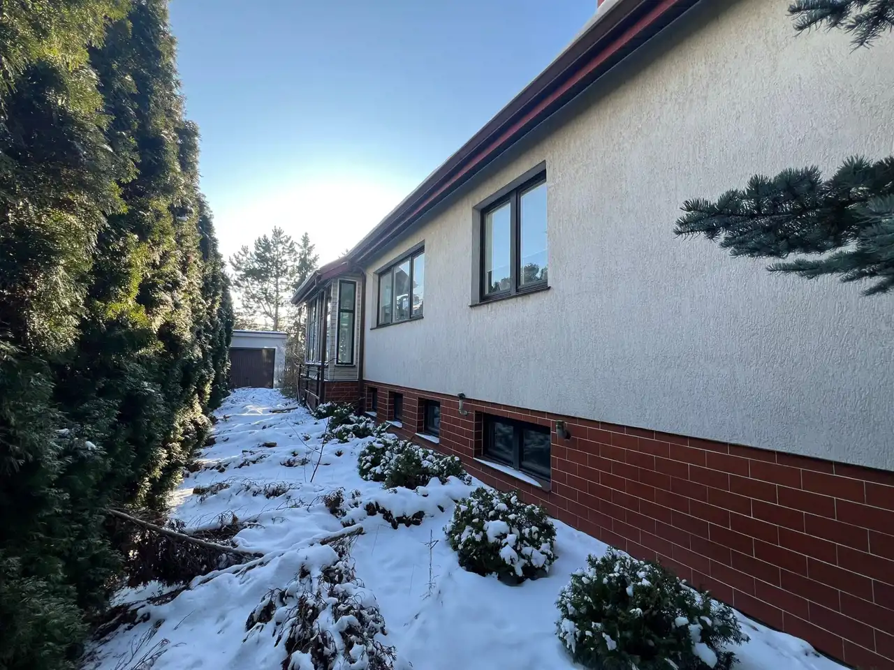 - Dom z zewnątrz został ocieplony styropianem.