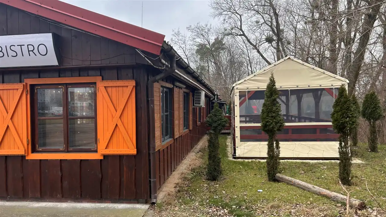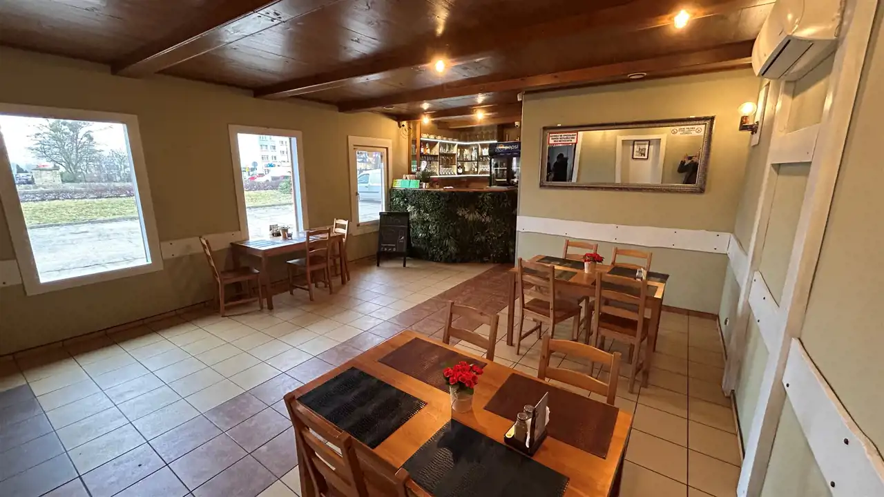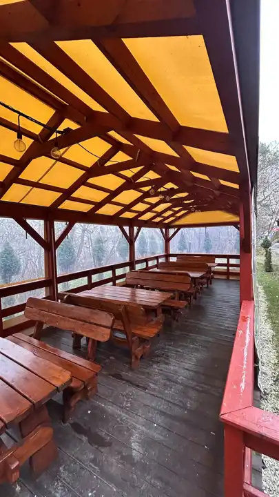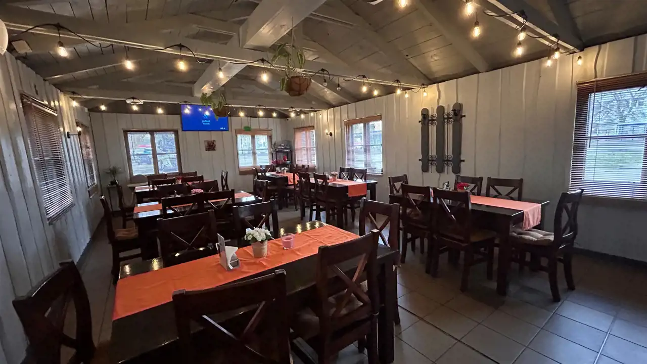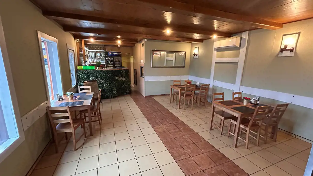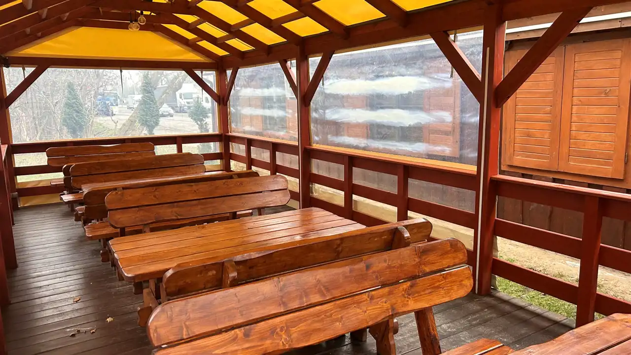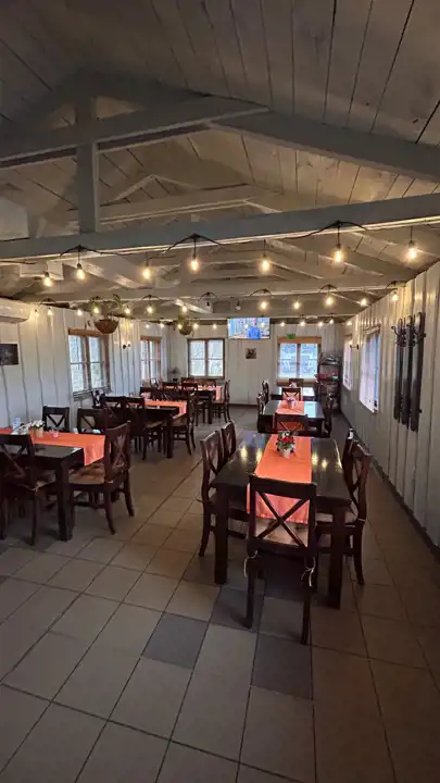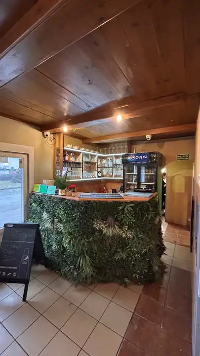 Lokal składa się z 2 sal konsumpcyjnych , osłoniętego zadaszonego tarasu drewnianego,