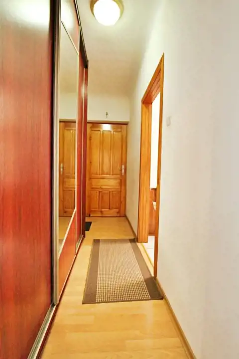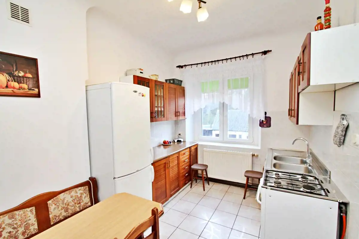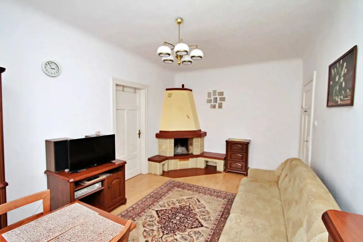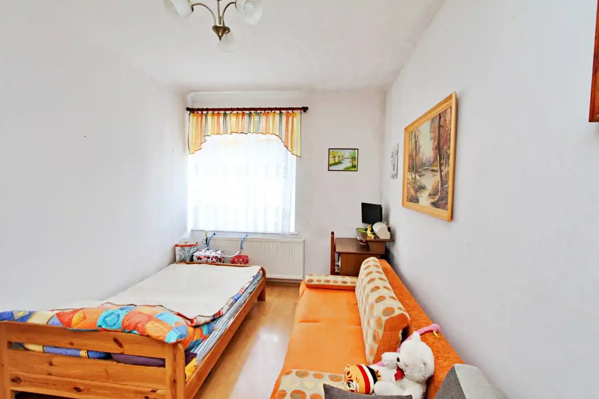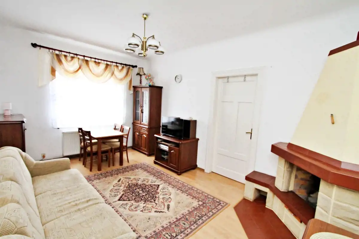 Mieszkanie bardzo przytulne . Gotowe do wprowadzenia. Okna PCV . Na podłogach w pokojach panele. W salonie kominek, który w zimne dni dodatkowo ogrzewa nieruchomość ale także nadaje niepowtarzalny klimat .Na ścianach gładzie. Kuchnia jasna z oknem, zabudowa kuchenna ,sprzęt AGD oraz stół z krzesłami .Na przedpokoju obszerna szafa. Łazienka z lustrem , umywalka z zabudowaną szafką , prysznic oraz pralka. Drzwi wejściowe antywłamaniowe.