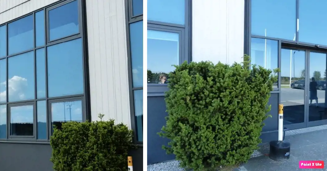 Fasada od strony północnej jest aluminiowa z otwieranymi oknami i drzwiami przesuwnymi które prowadzą do części biurowej .