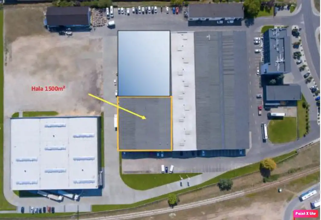 Hala wyposażona jest w jedną bramę unoszoną o wymiarach 3,6m x 3,6 m .
