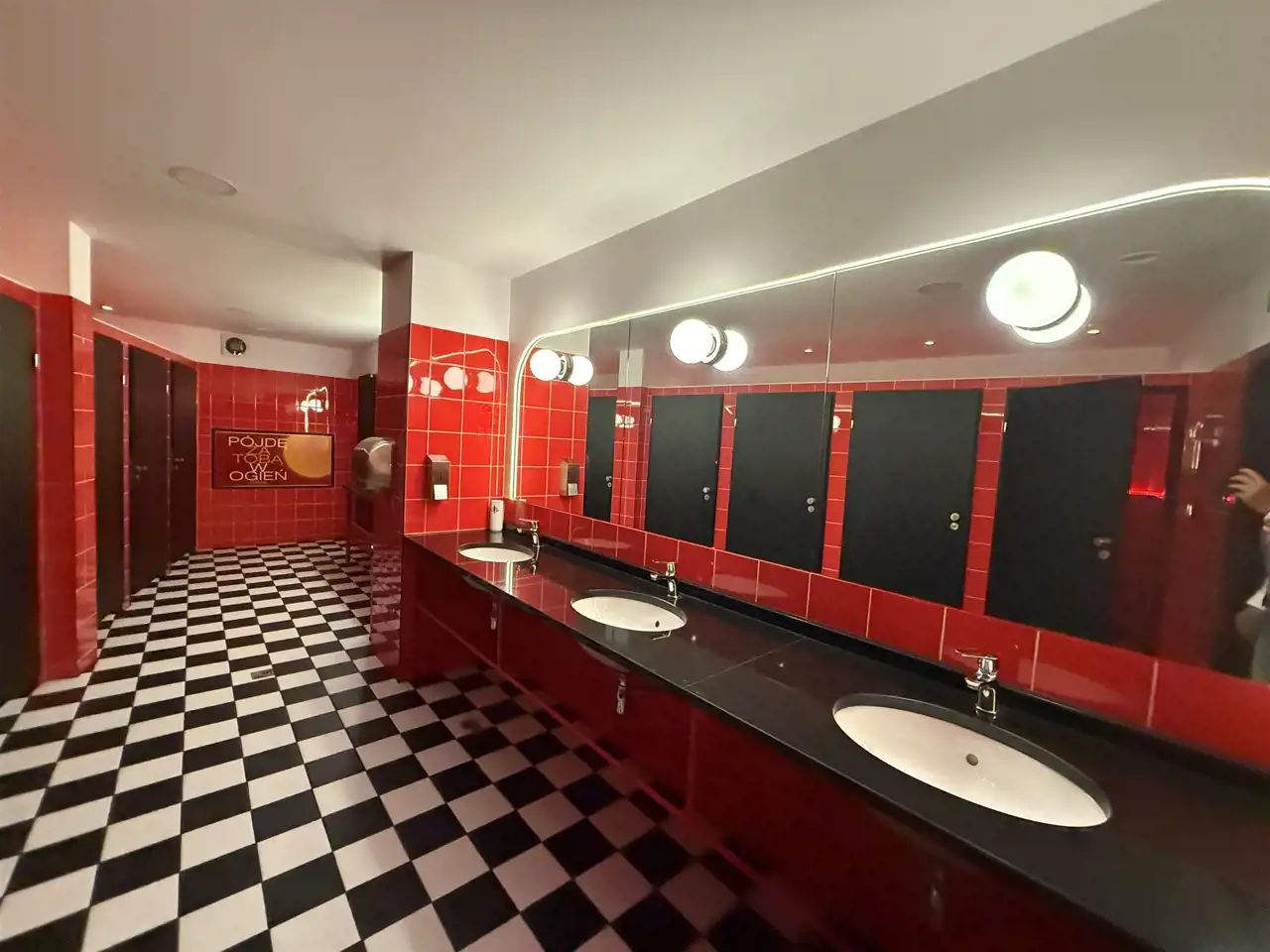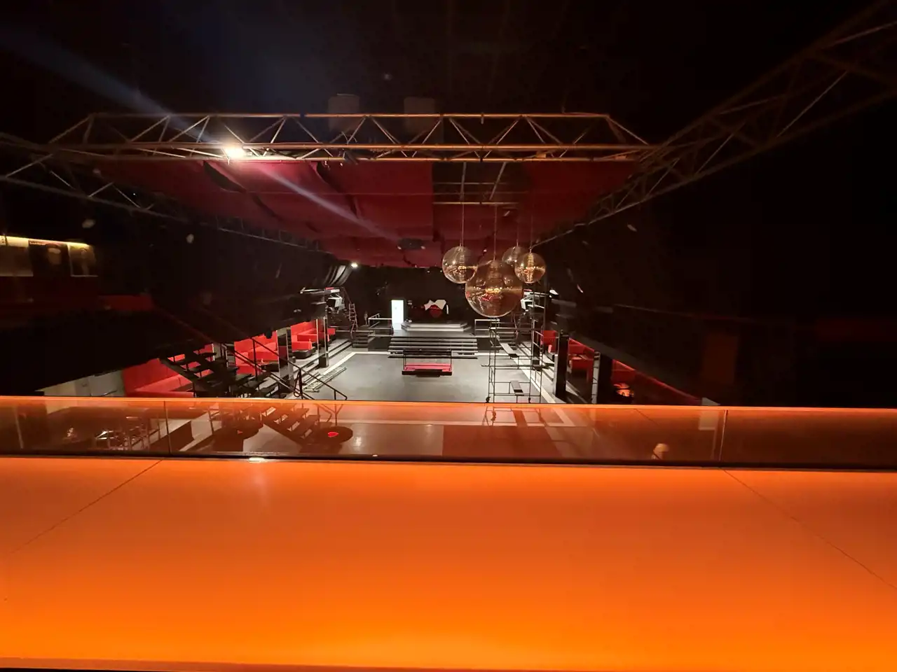 Parter:stanowi korytarz , kasy , palarnie oraz 600 m2 sali tanecznej ze sceną pod koncerty , DJ itp