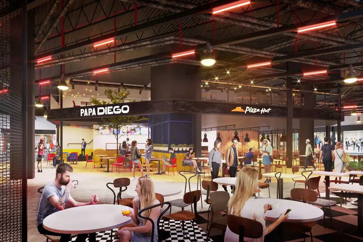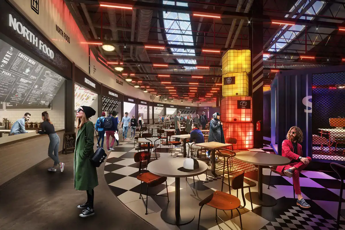 - Food Hall – restauracje, bary , punkty sprzedaży gastronomii skupione w jednym miejscu
