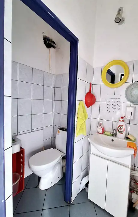 W lokalu znajduje się małe pomieszczenie gospodarcze i toaleta. Ogrzewanie miejskie.