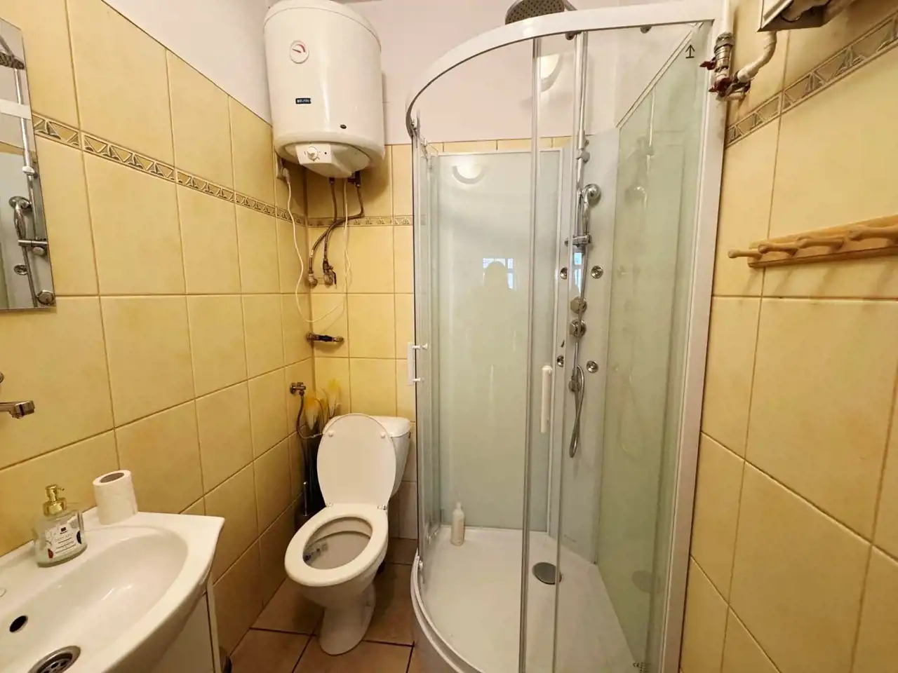 - 1 pomieszczenie zamknięte ,na podłogach panele z dodatkową łazienką (umywalka, bidet),