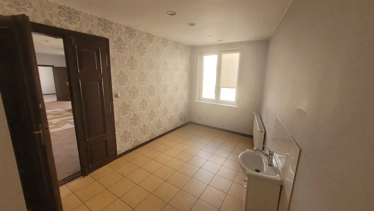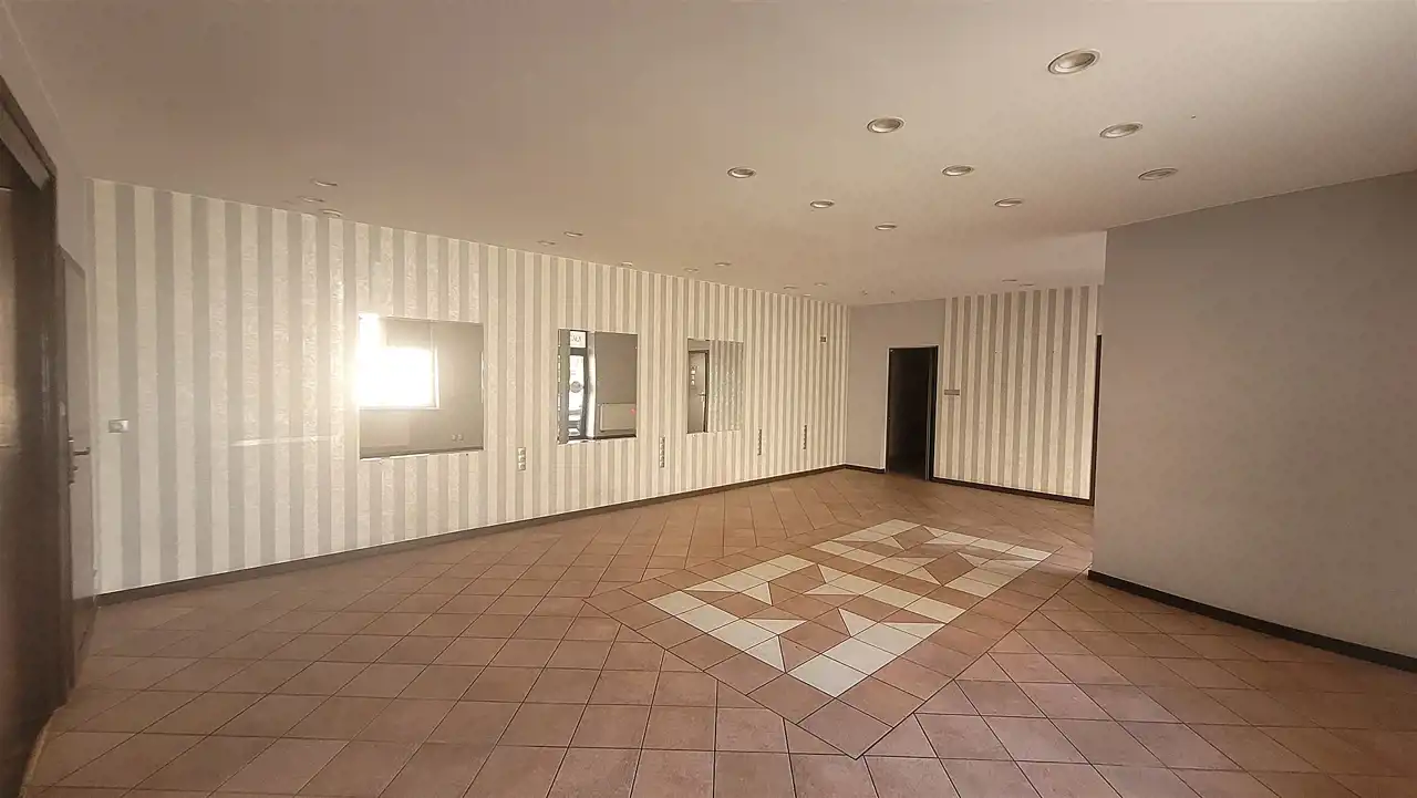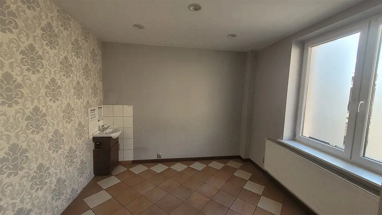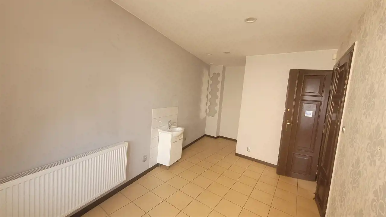 Nieruchomość mieści się na parterze piętrowego budynku obok innych lokali usługowych. Składa się z dużej sali usługowej (ok. 50 m2) i mniejszych widnych pomieszczeń (10/13m2) oraz pomieszczenia socjalnego i sanitarnego.