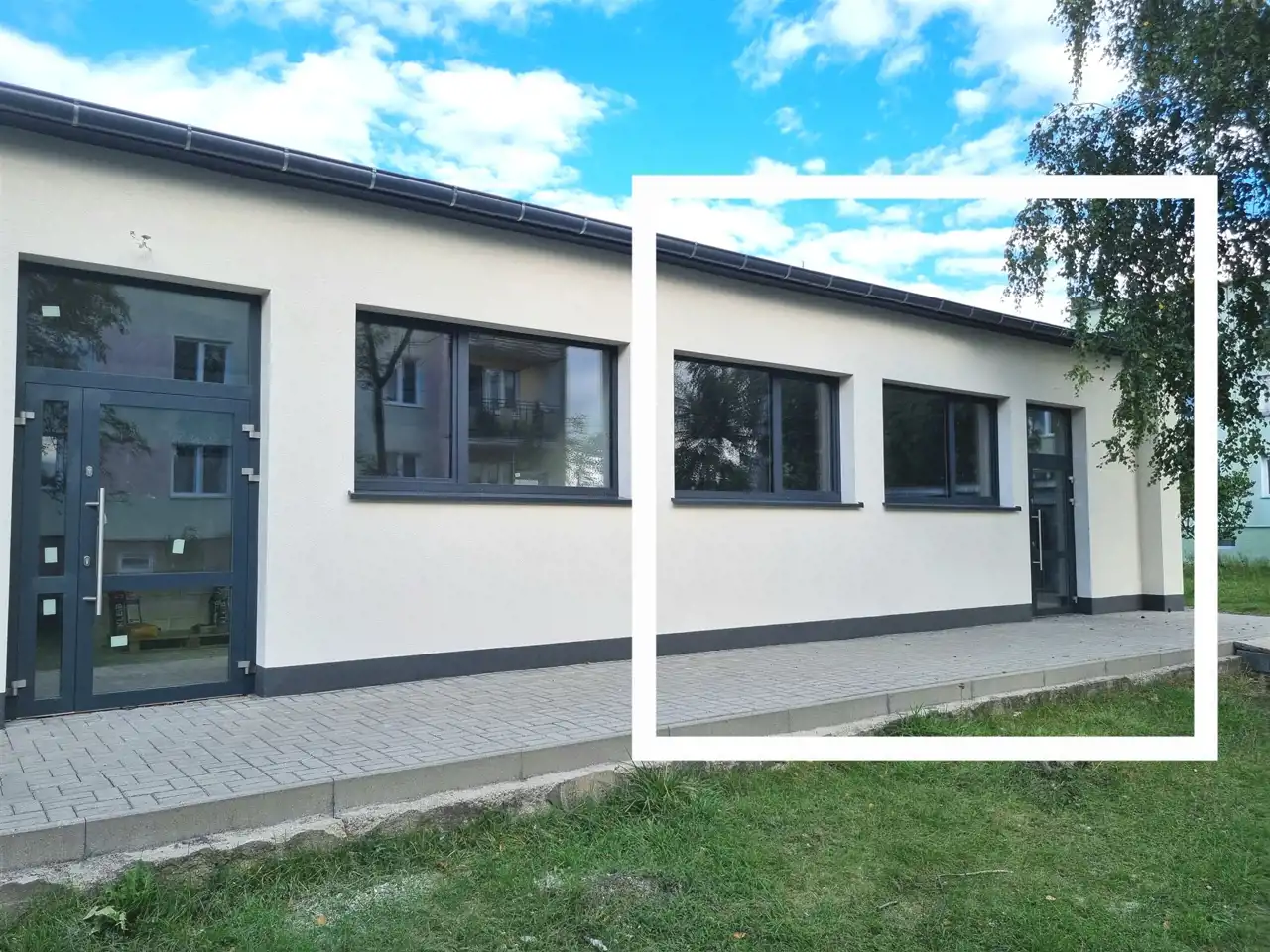 Posiada dwa odrębne wejścia, główne od strony ulicy, oraz od tylnej strony budynku (strony parkingu).