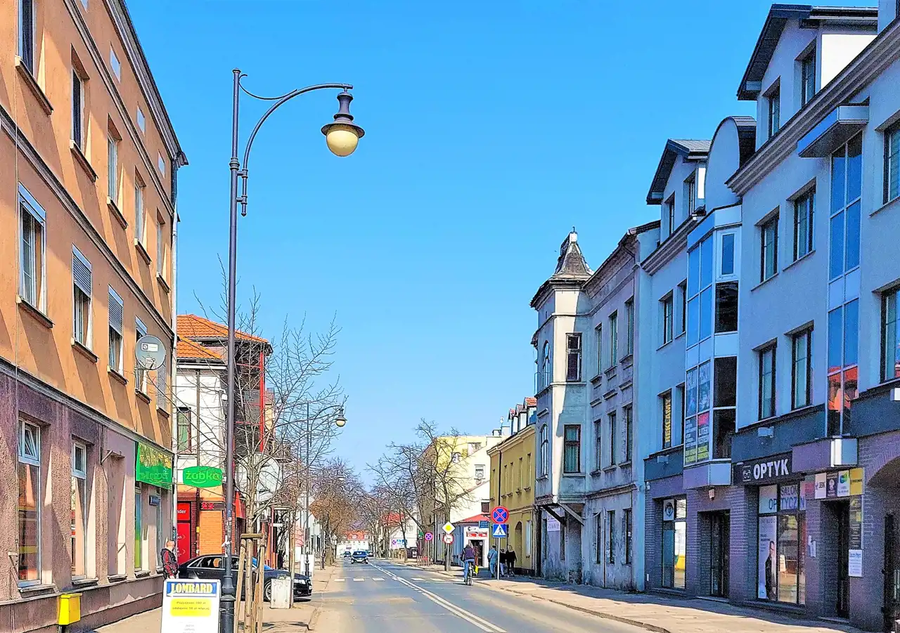 - Centrum miasta – ul. Królewiecka to rejon o dużym natężeniu ruchu i wzmożonym handlu.