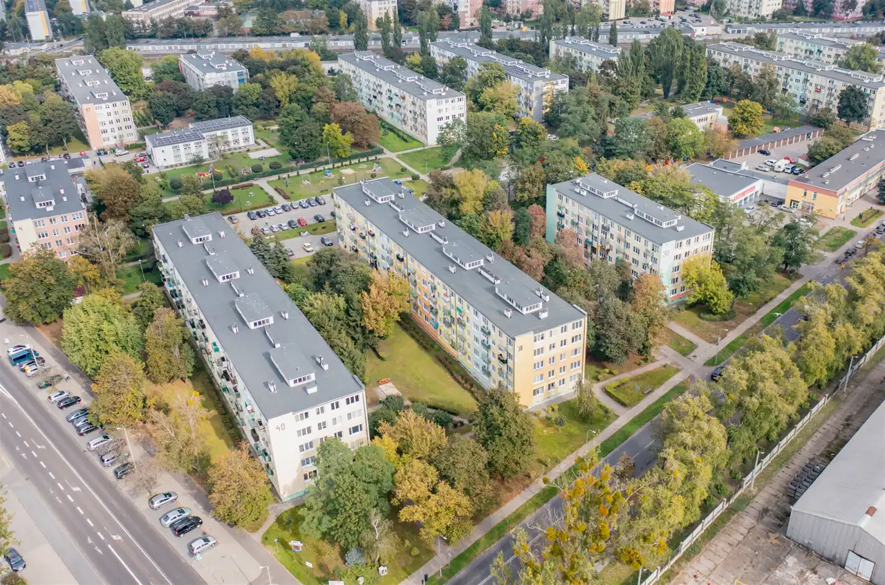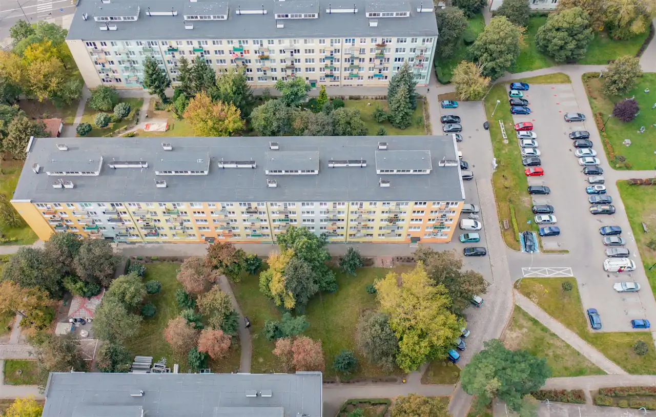 - Różnorodność zabudowy, która dodaje charakteru. Okolica charakteryzuje się wielorodzinną zabudową z dodatkami domków jednorodzinnych, co tworzy przyjazny klimat i urozmaiconą architekturę.