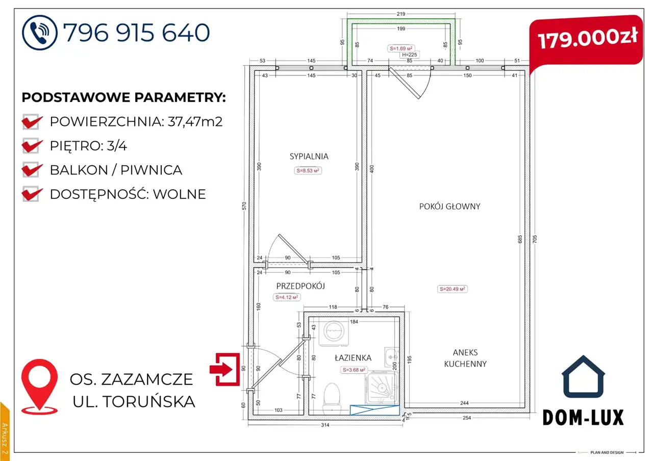 Niniejsza oferta stanowi własność DOM-LUX NIERUCHOMOŚCI I UBEZPIECZENIA SŁAWOMIR ŻBIKOWSKI.