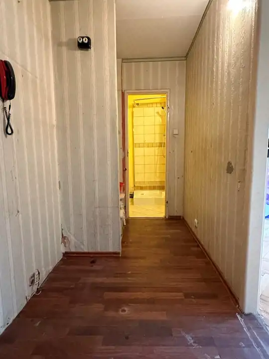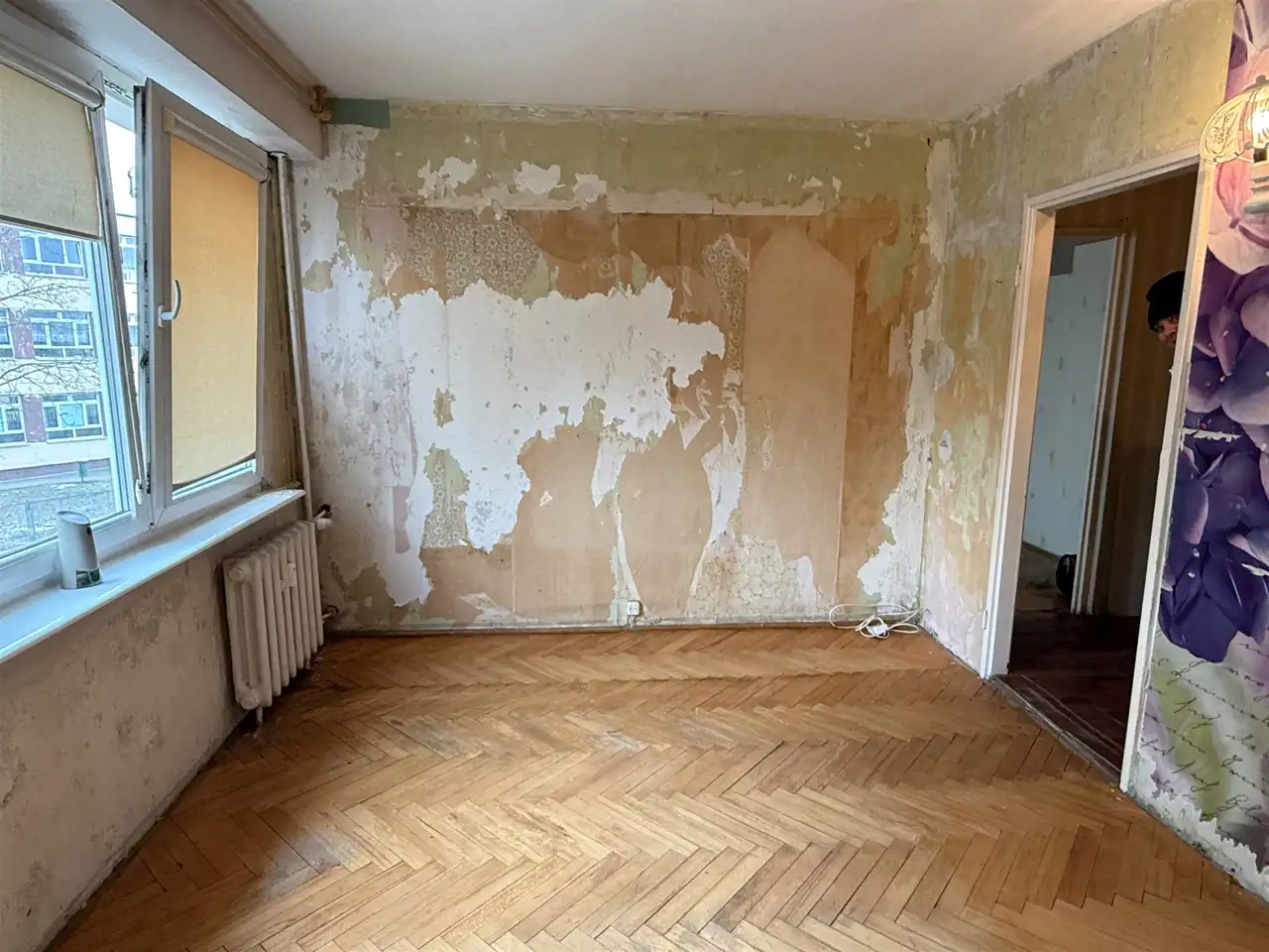 Duży pokój 11,26 mkw, mniejszy 8,51, jasna kuchnia 3,92 mkw, łazienka z WC 3,15 mkw, przedpokój 5,39 mkw – do kapitalnego remontu, za wyjątkiem okien PCW.