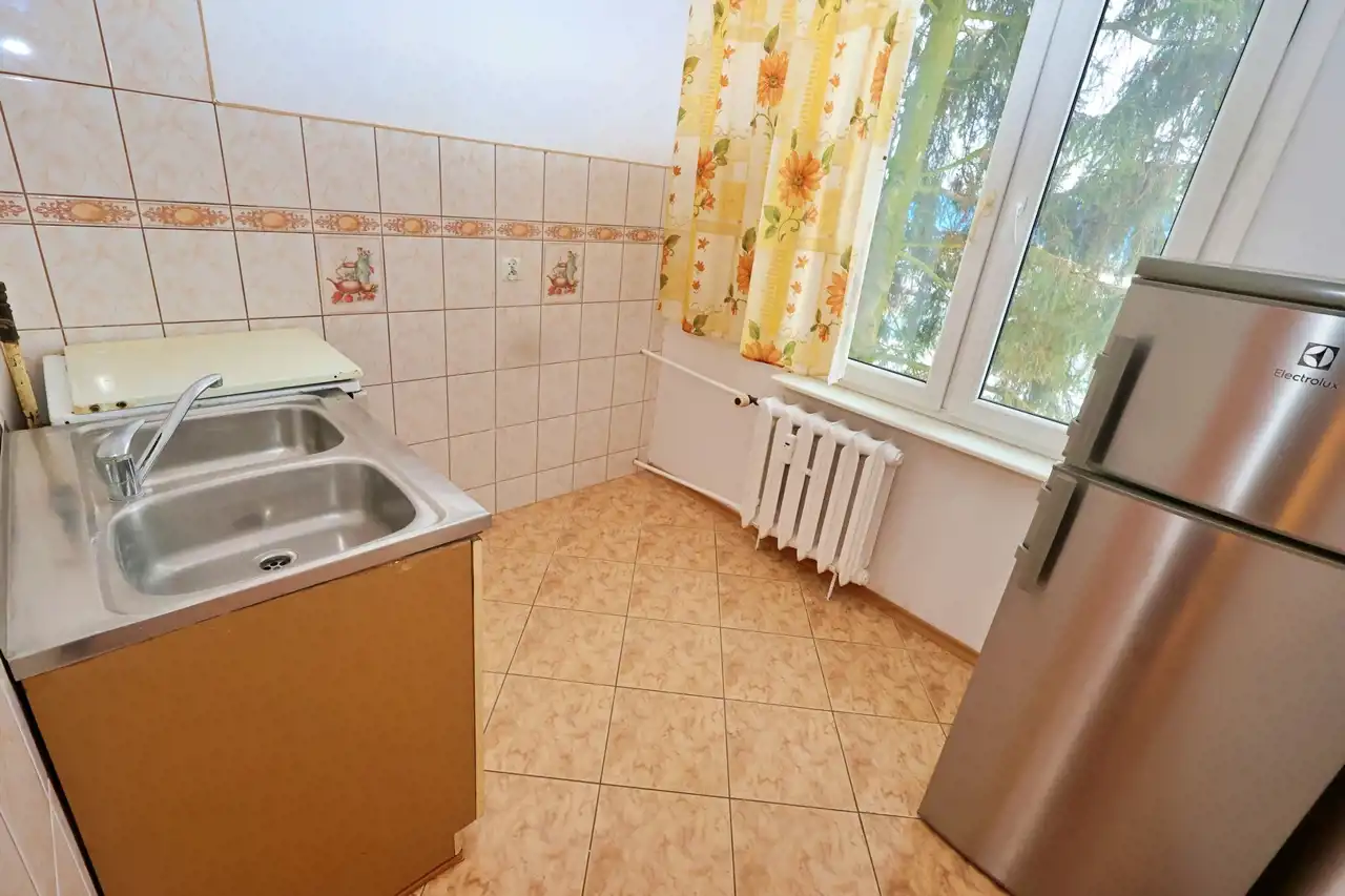 Układ idealny pod wynajem: dwa pokoje (jeden przechodni), oddzielna kuchnia z oknem, łazienka oraz przedpokój. Rozkład umożliwia łatwe dostosowanie pod potrzeby najemców i szybkie przygotowanie lokalu do wynajmu bez kosztownych przeróbek.
