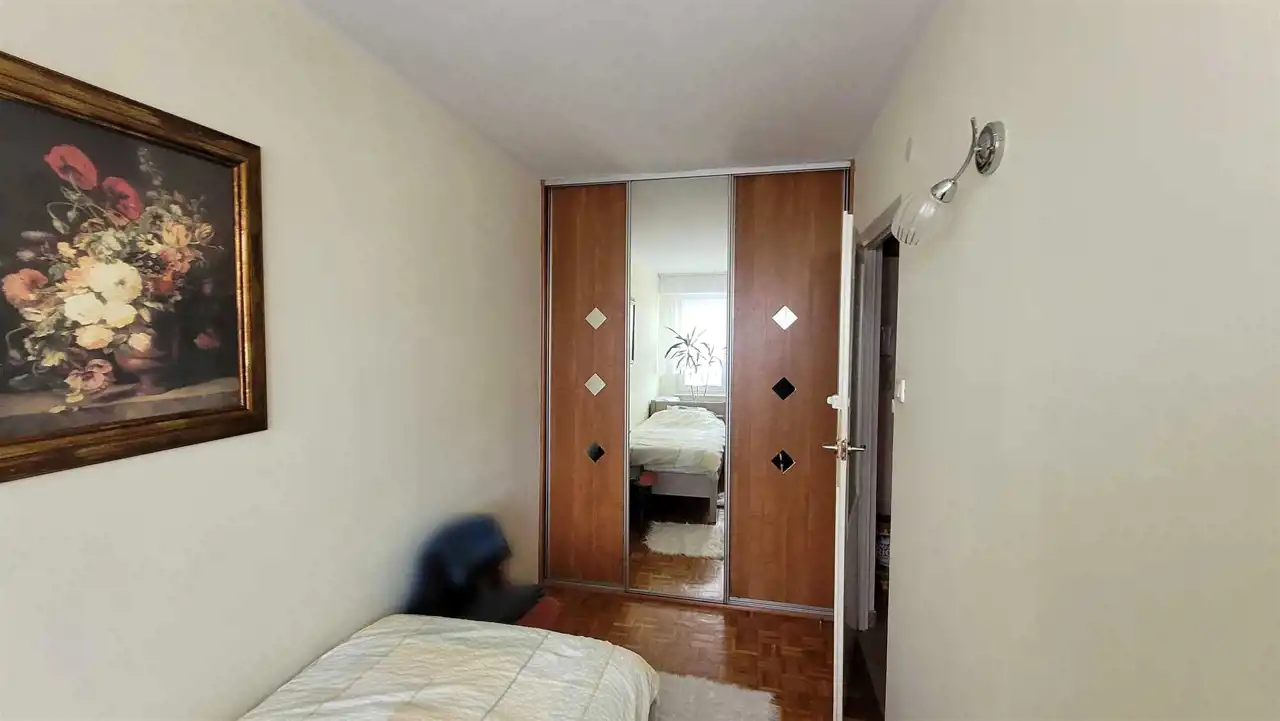 W cenie pozostaje pojemna szafa w zabudowie w sypialni oraz duża szafa w zabudowie w przedpokoju.