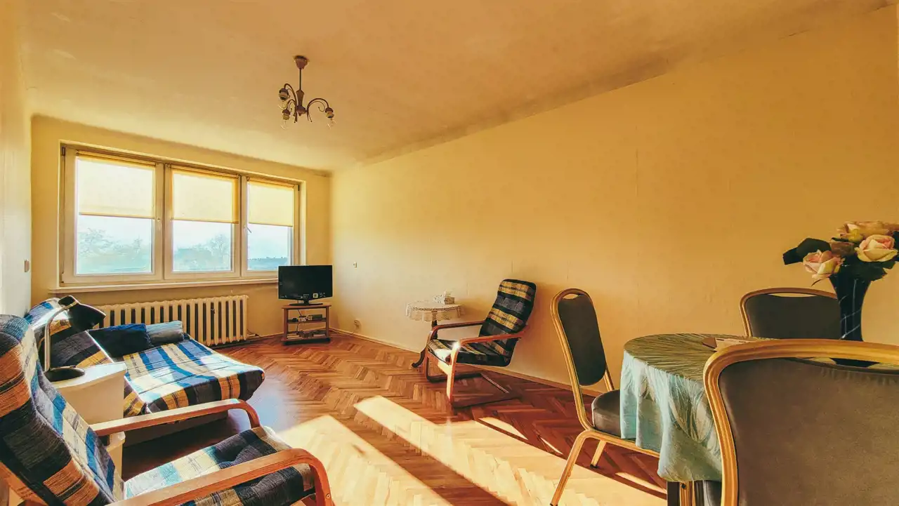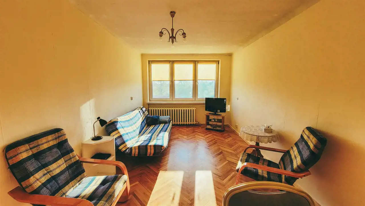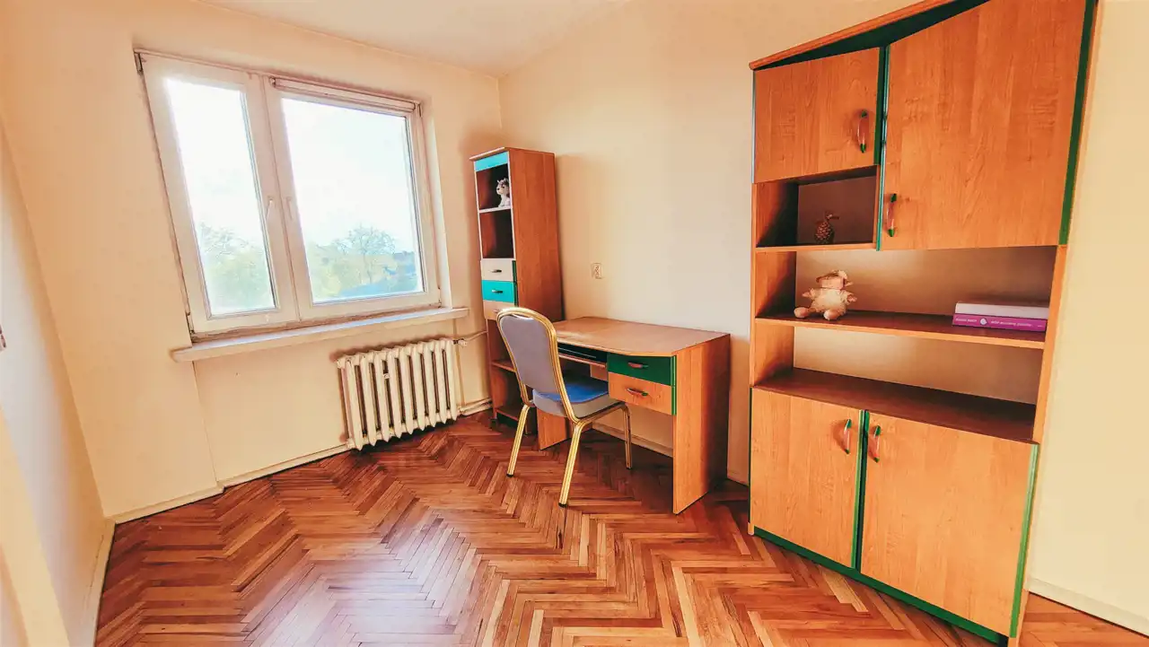Mieszkanie odświeżone, rozkładowe. Parkiety w pokojach w db. stanie. Okna PCV, ściany w gładziach. Przedpokój i kuchnia terakota. Łazienka niedawno remontowana. Pakowna szafa w zabudowie na przedpokoju.