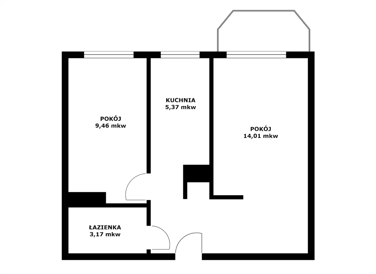 Mieszkanie 2-pokojowe o powierzchni 38,10 mkw + piwnica 4,50 mkw – pełna własność, z gruntem i księgą wieczystą – położone na 3. piętrze bloku 4-piętrowego, wybudowanego w 1993 r. z cegły, na Os. Południe we Włocławku, składające się z pokoju dziennego o powierzchni 14,01 mkw, z wyjściem na duży balkon, sypialni 9,46 mkw, jasnej kuchni 5,37 mkw, łazienki z WC – 3,17 mkw i przedpokoju.