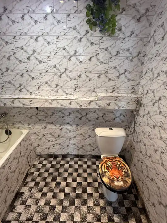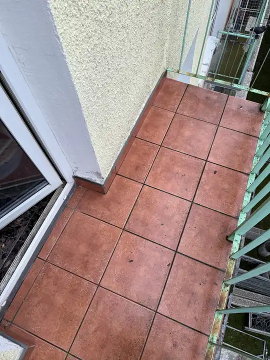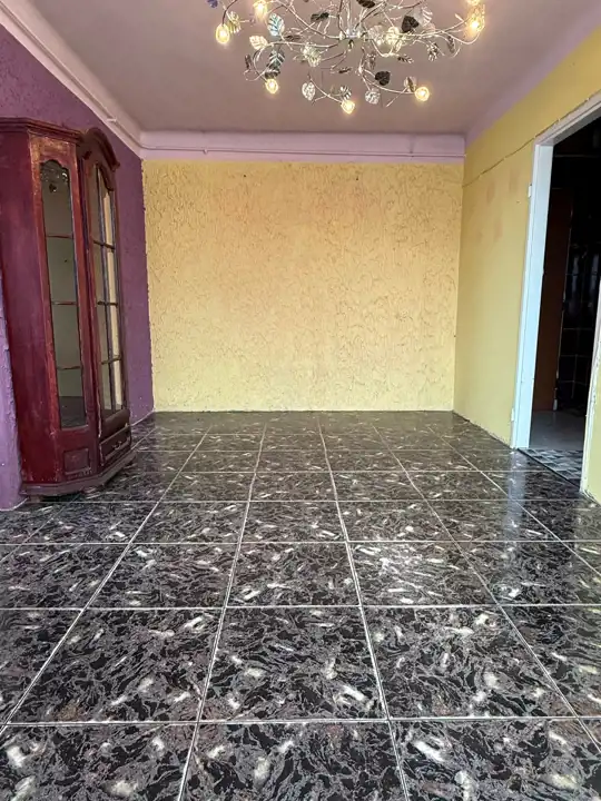 Nowe okna PCW, w kuchni z szerokim, praktycznym parapetem, drzwi antywłamaniowe „Gerda”, w dużym pokoju na podłodze solidna terakota, na ścianach i suficie częściowo gładź, częściowo tynk ozdobny, w kuchni na podłodze jasna terakota, czekoladowa glazura, na suficie podwieszony panel z oświetleniem, w łazience nietypowa glazura, porządny gres mrozoodporny na balkonie.