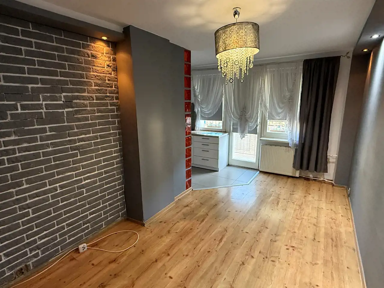 Nowocześnie wykończone w modnych kolorach natury, drewna, metalu -z umeblowaniem i wyposażeniem: w pokojach na podłodze panele, na ścianach i sufitach gładź, w dużym pokoju na jednej ze ścian ozdobna cegła, na drugiej niszowe półki,w kuchni na podłodze kasztanowa terakota, jasna glazura, zabudowa meblowa – szafki wiszące i stojące wraz płytą grzewczą, z piekarnikiem, pochłaniaczem zapachów.