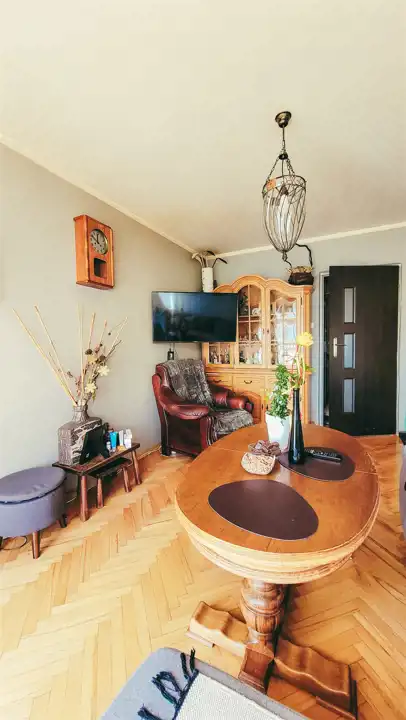 Lokal dwustronny, rozkładowy, nie wymaga dużych nakładów do zamieszkania. Na ścianach gładzie, podłogi pokoi i przedpokój w parkietach - stan bdb., kuchnia i łazienka w płytkach, okna PCV w dobrym stanie. Jasne pomieszczenia oraz ich układ sprawiają, że mieszkanie jest widne i przytulne.