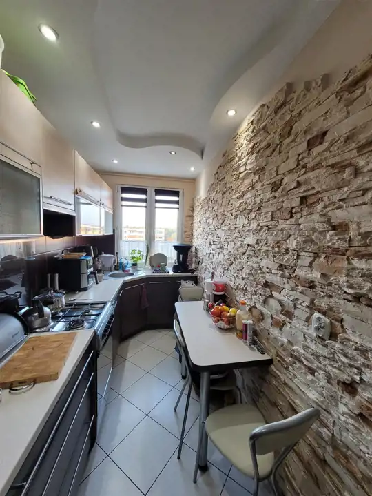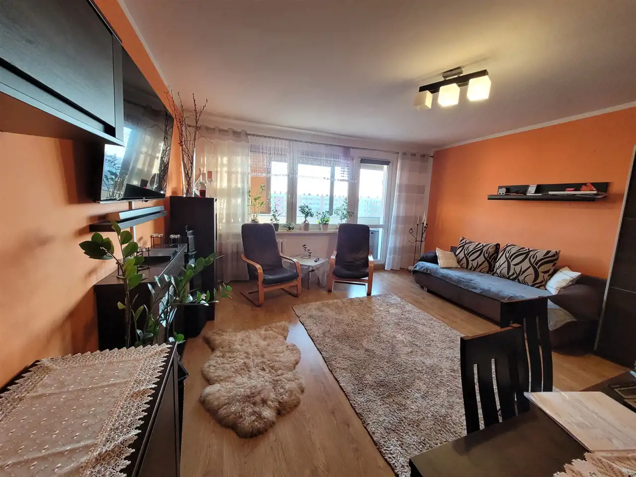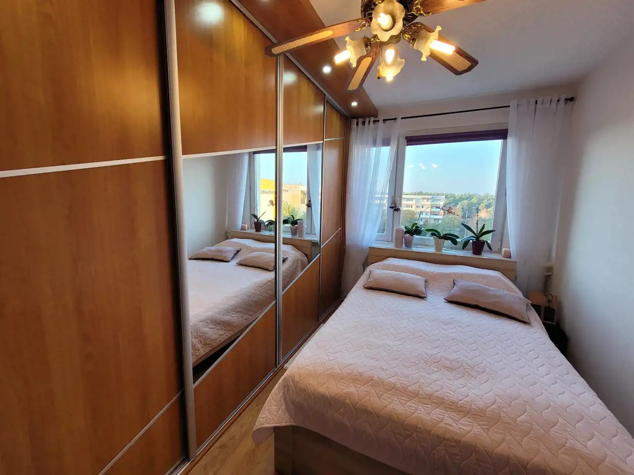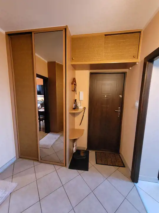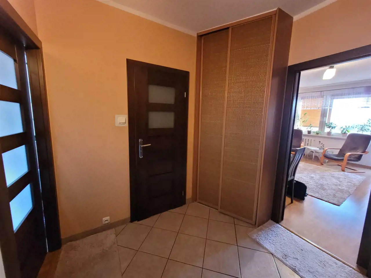 Mieszkanie jest dwustronne, słoneczne. W przedpokoju 2 szafy w zabudowie, w małym pokoju również szafa na całej długości ściany. Na podłogach panele i gres. Duży przestronny balkon typu loggia, rolety zewnętrzne. Klatka schodowa czysta i zadbana.