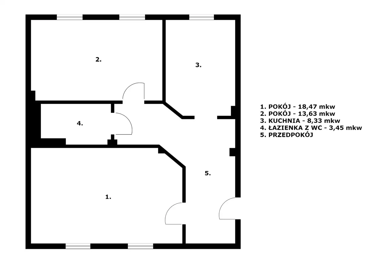 Dwustronne, bez pokoi przechodnich, z jasną kuchnią, duży pokój o powierzchni 18,47 mkw, sypialnia – z lekkimi skosami – 13,63 mkw, kuchnia - 8,33 mkw, łazienka z WC – 3,45 mkw, przedpokój – całkowicie odnowione: nowe, 3-szybowe okna, nowe parapety, grzejniki, drzwi wewnętrzne wraz z ościeżnicami, na podłodze w pokojach i w kuchni nowe panele, na ścianach i sufitach gładź, łazienka do wykończenia, z wyprowadzonymi końcówkami mediów, do podłączenia, w przedpokoju na podłodze terakota, szafa z drzwiami przesuwnymi.