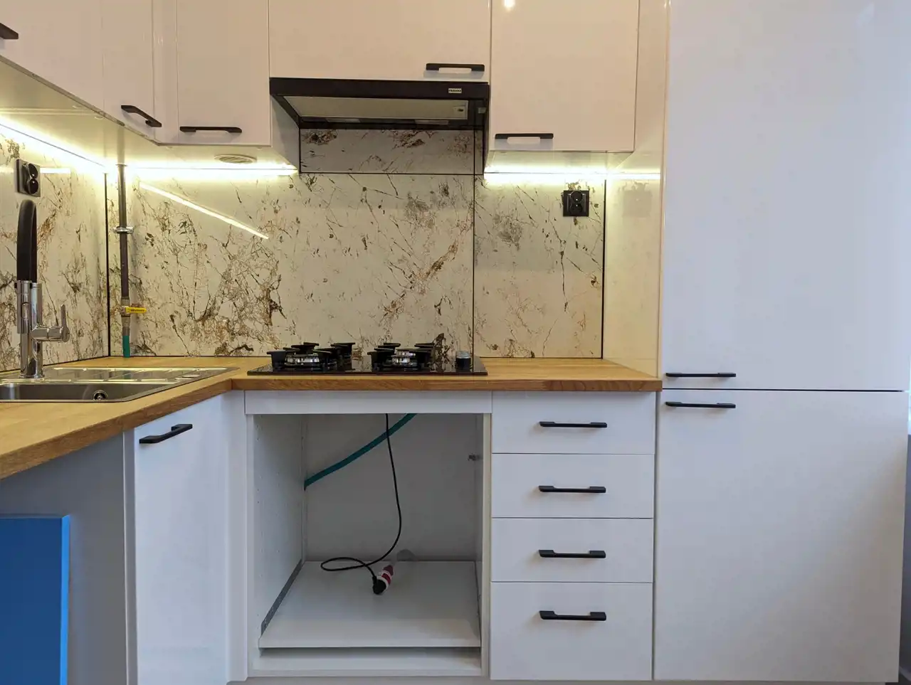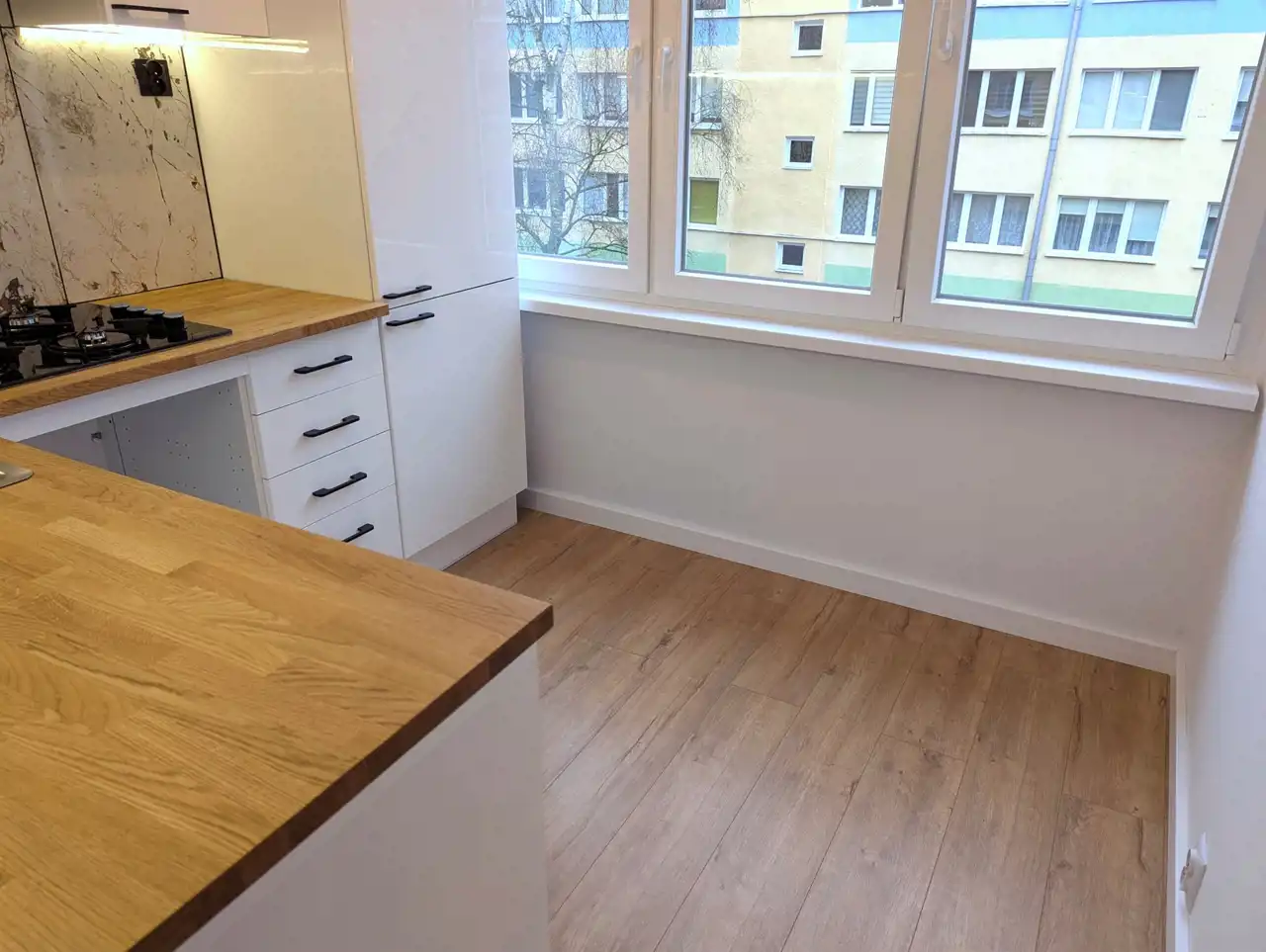 W dodatku jest idealnie, od podstaw, nowo wykończone! Została wymieniona instalacja elektryczna wraz z rozdzielnicą, instalacja wodno-kanalizacyjna, założone nowe grzejniki, nowe drzwi i ościeżnice – wejściowe antywłamaniowe, wygłuszone, wewnętrzne DRE, okna PCW, na ścianach i sufitach nieskazitelnie biała gładź, w całym mieszkaniu (oprócz łazienki) na podłodze są bezprogowe panele, położone na samopoziomującej się wylewce, w nowocześnie urządzonej, z efektownymi podświetleniami, łazience - terakota, glazura a`la marmur, liczne szafki i praktyczne meble. W kuchni piękna, biała zabudowa, z podświetlanymi ledowo szafkami, z dużymi płytami glazury na ścianach, bez zbędnych, narażonych na zabrudzenia, fug, z płytą gazową MPM, z wyciągiem Franke, z miejscami i gotowymi przyłączami elektrycznymi dla zmywarki, piekarnika i lodówki.