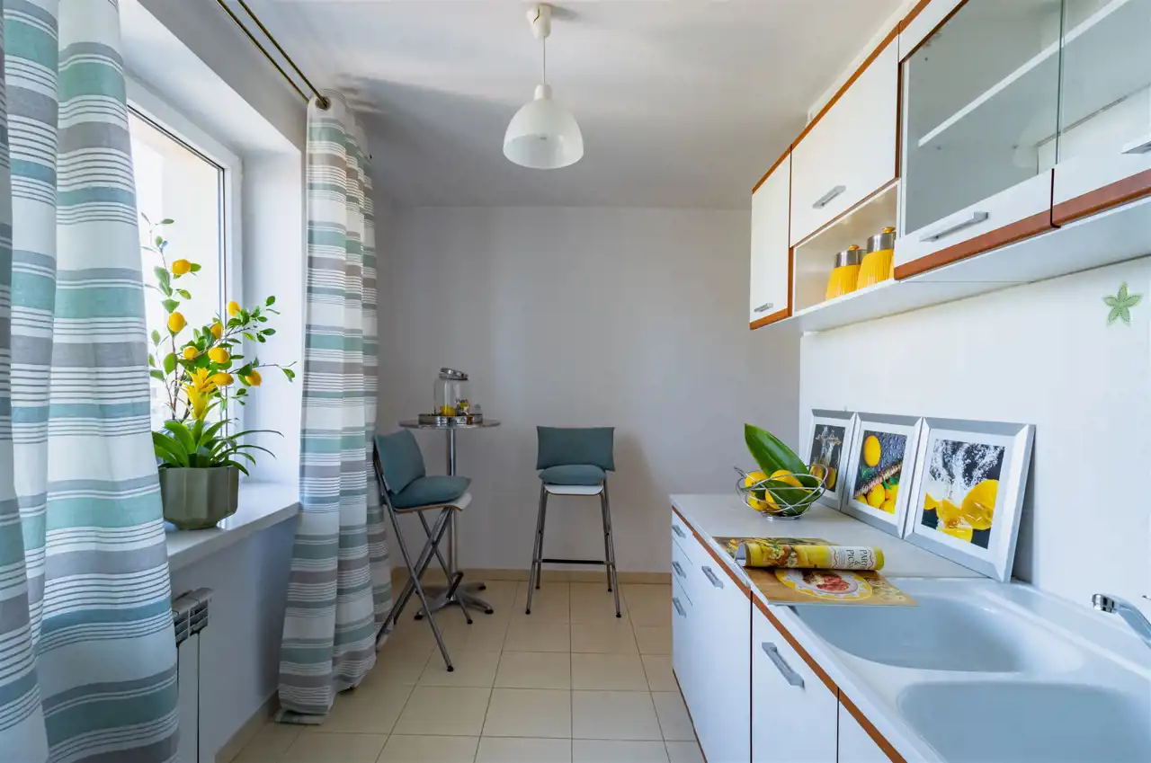 - Kuchnia z oknem na północny wschód zapewnia przyjemne, naturalne światło o poranku, idealne do rozpoczęcia dnia.