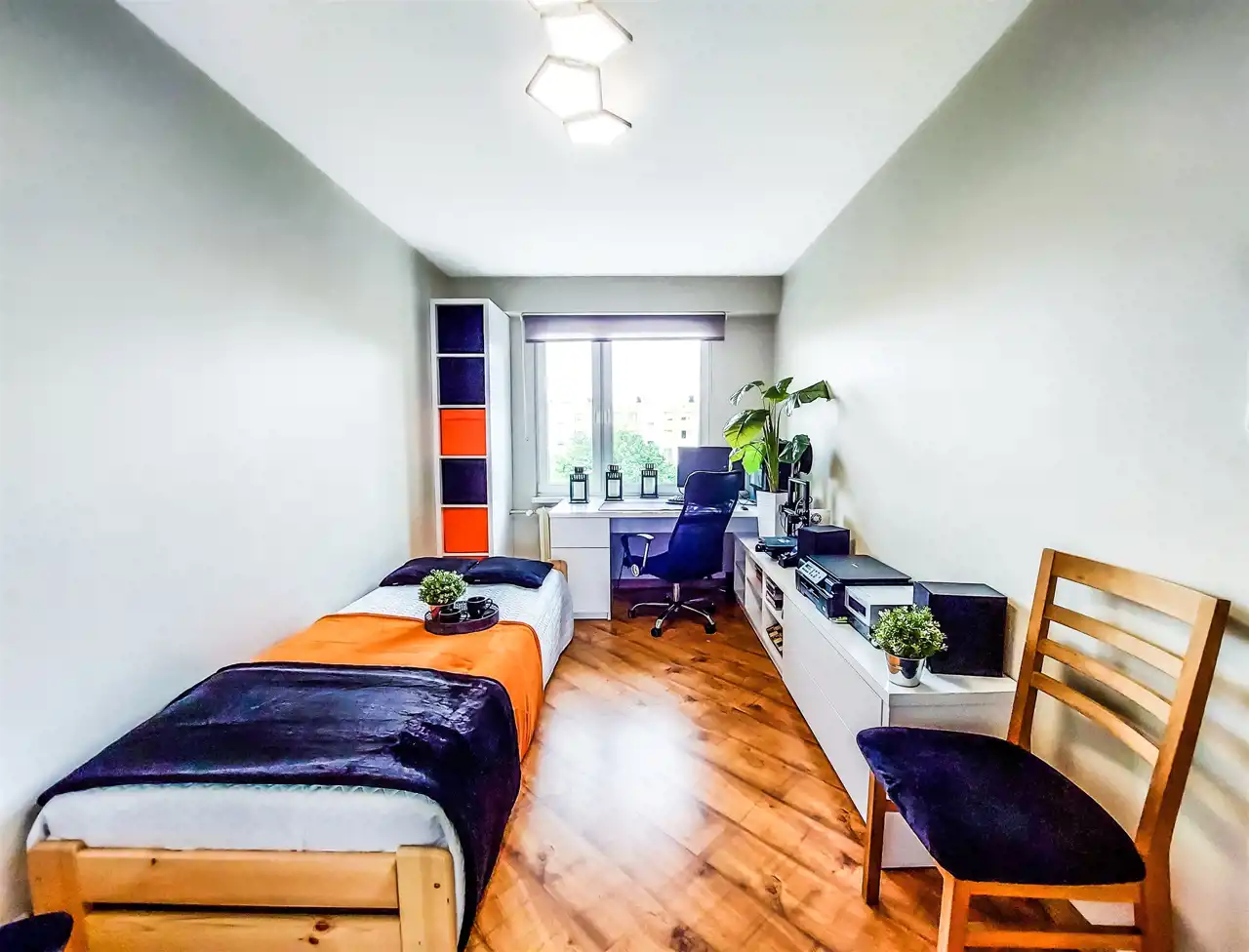 - Brak przechodnich pokoi.