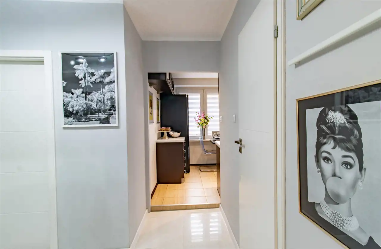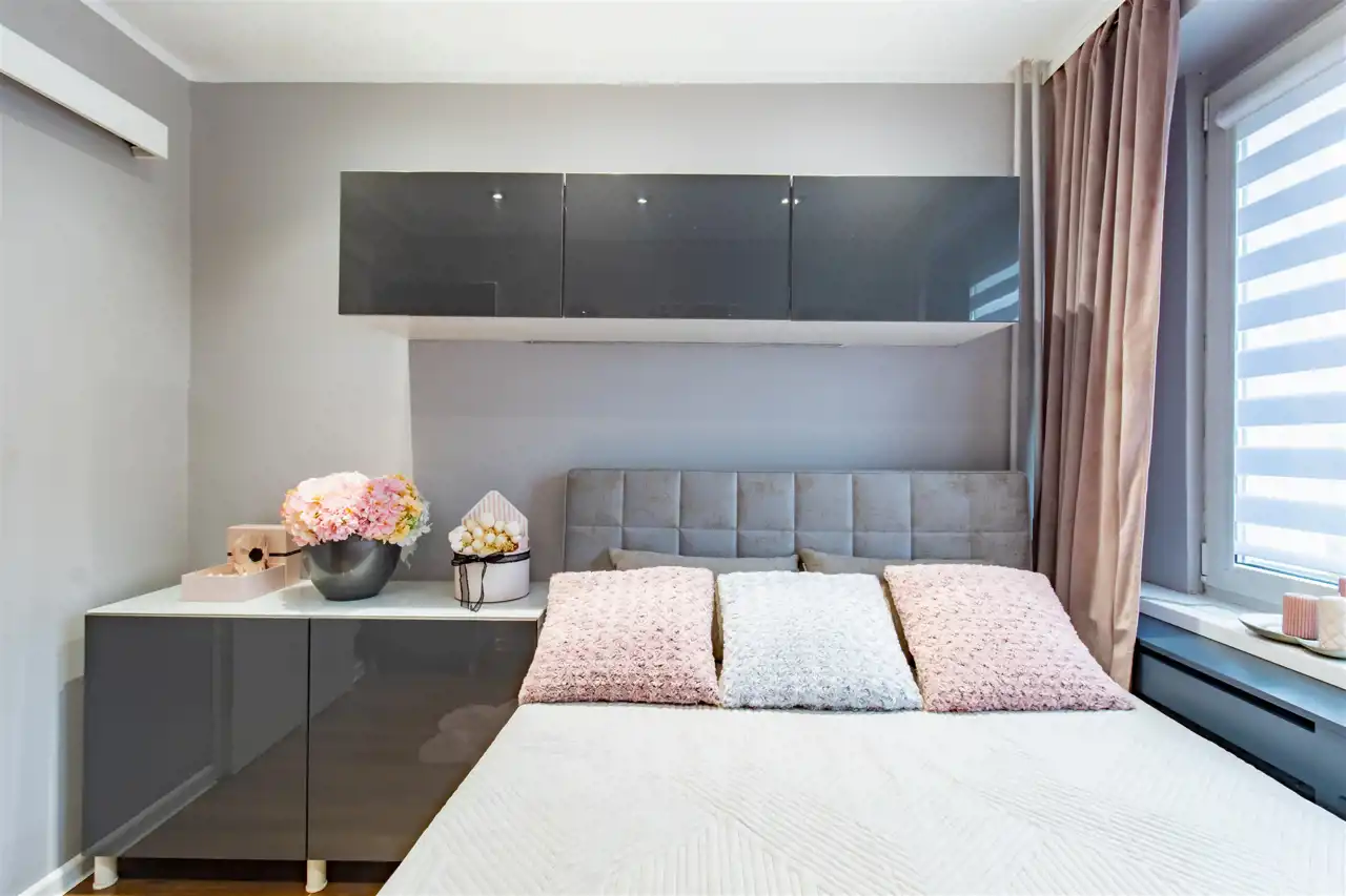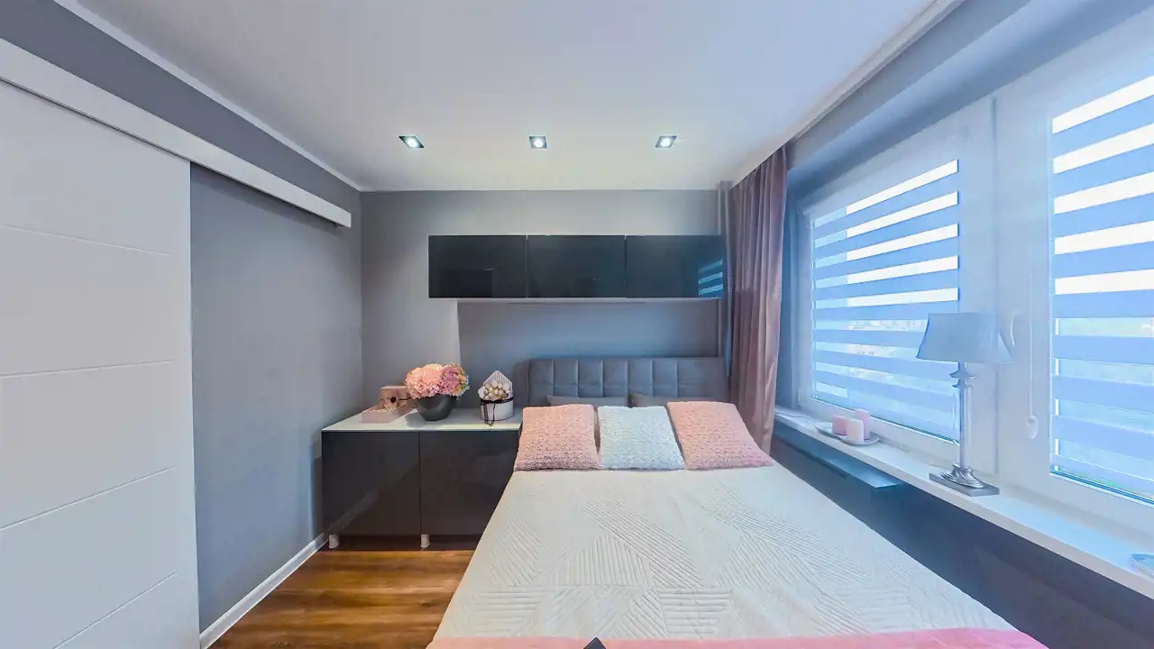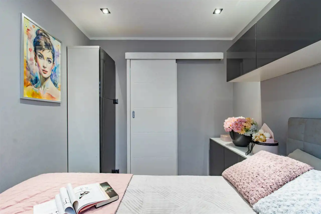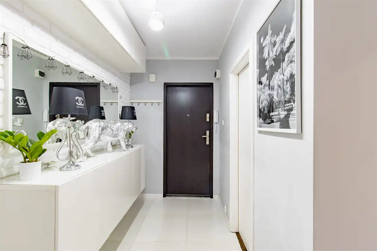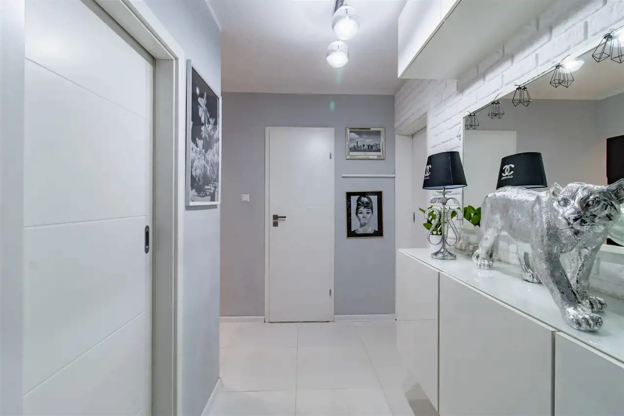 Mieszkanie zachwyca spójną, elegancką kolorystyką, w której dominują biele, odcienie szarości, pudrowego różu oraz czerni – tworząc harmonijną i ponadczasową przestrzeń. Subtelne połączenie barw nadaje wnętrzom wyjątkowy charakter i poczucie przytulnej elegancji. To idealna propozycja dla osób ceniących styl, estetykę i doskonale zaprojektowaną przestrzeń.