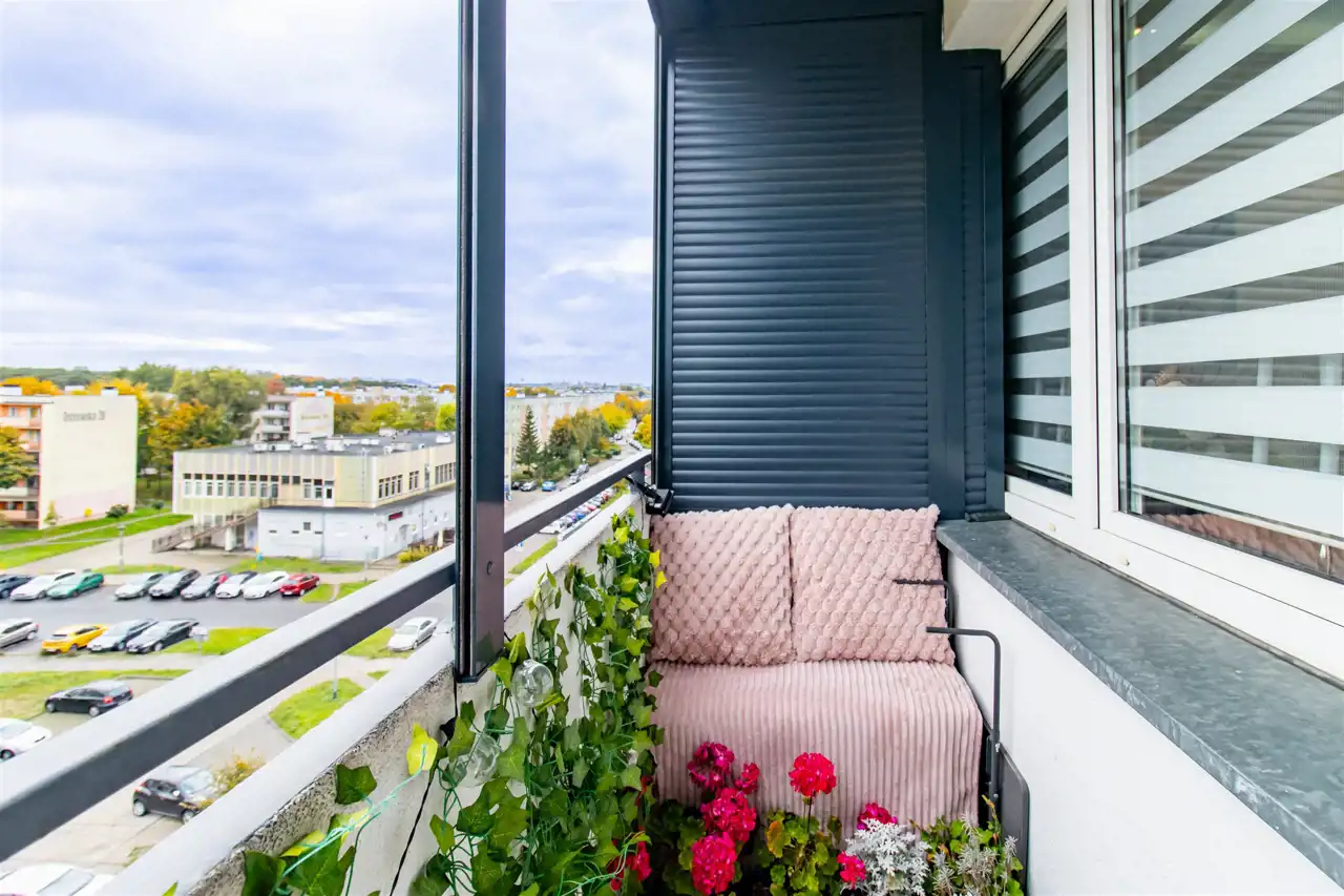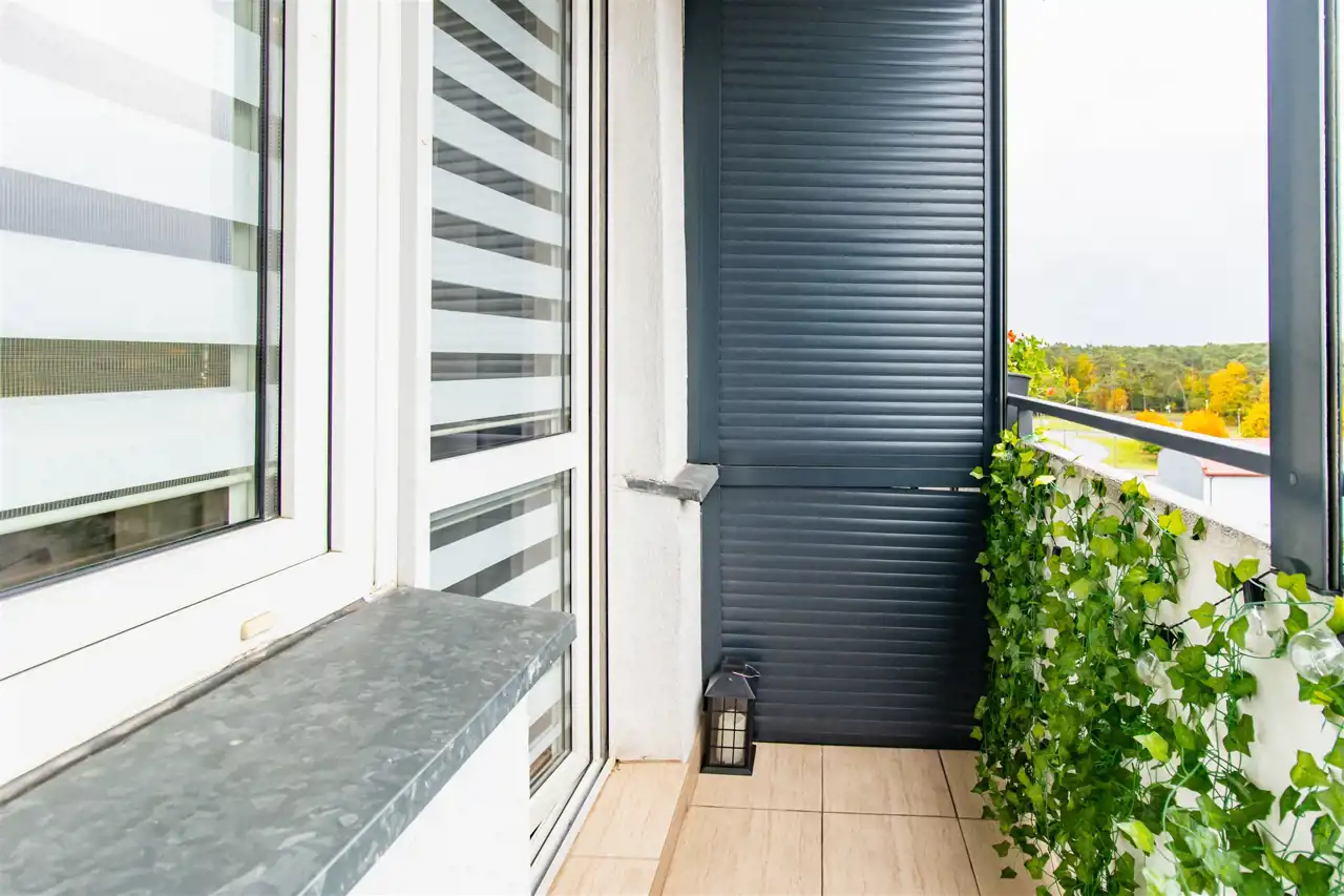Dodatkowym atutem jest balkon, czyli dostęp do otwartej przestrzeni, przy jednoczesnym osłonięciu od wiatru, słońca i deszczu (wyposażony w solidne rolety antywłamaniowe, gwarantujące bezpieczeństwo i spokój).