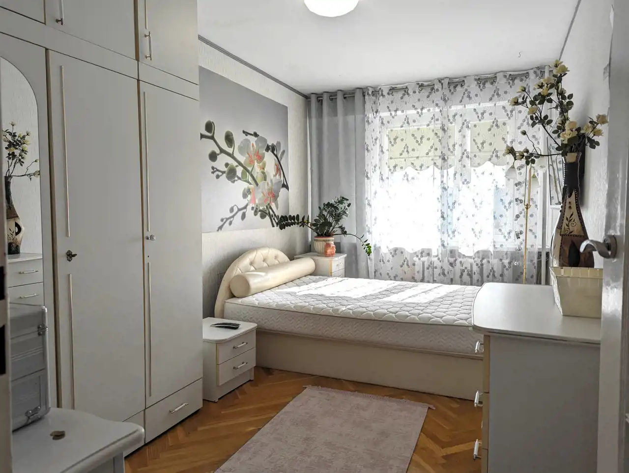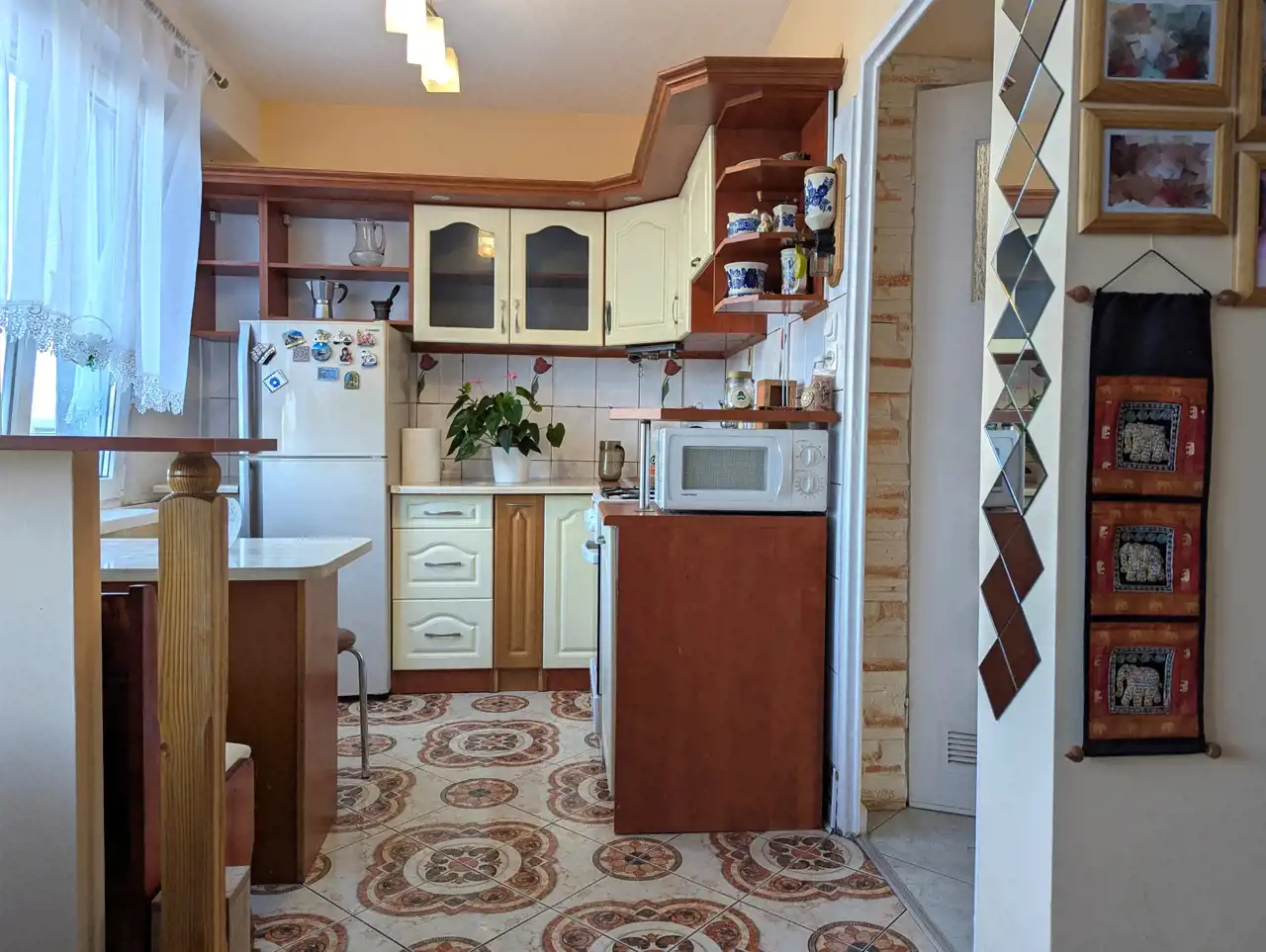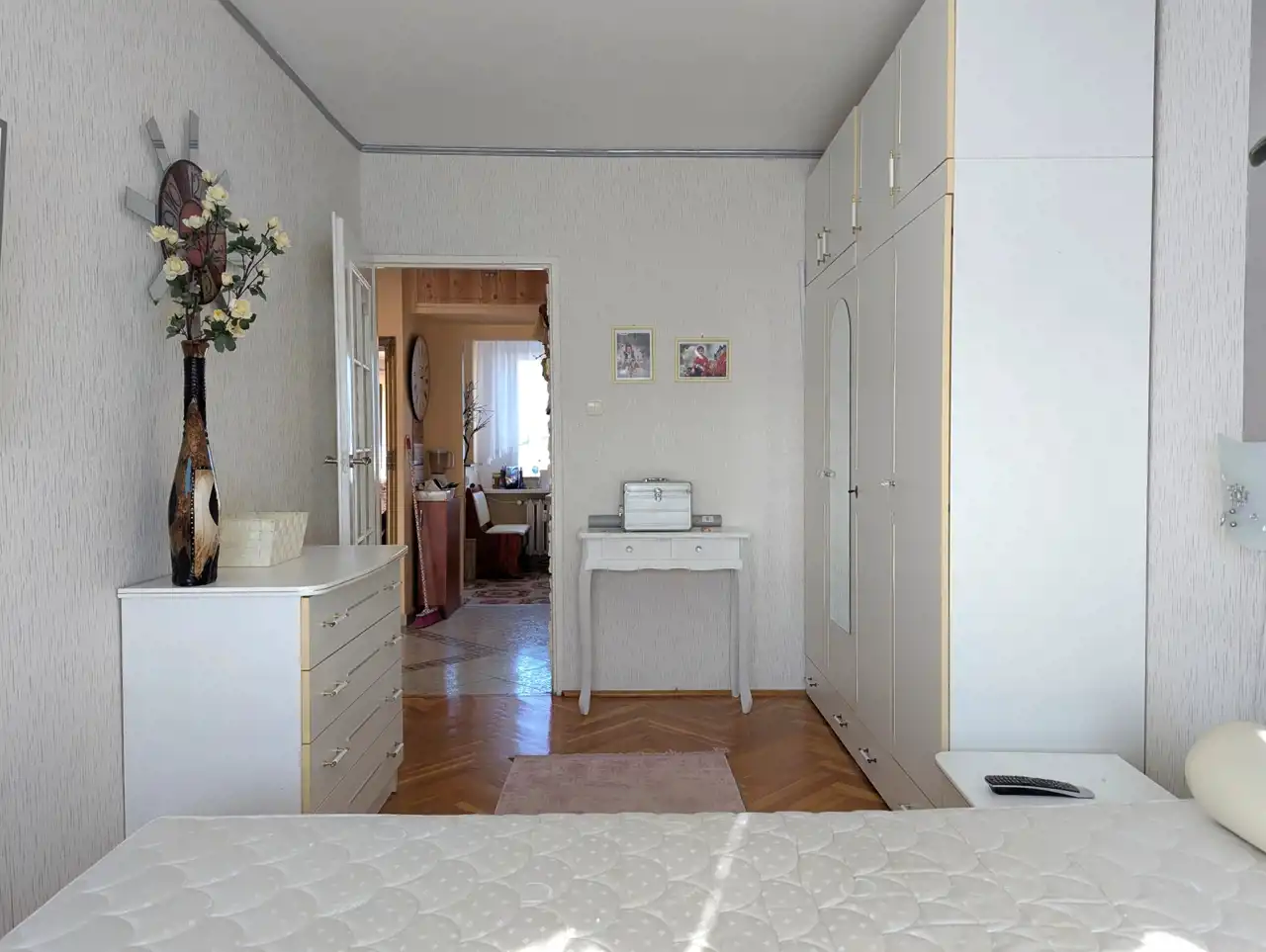 Mieszkanie dwustronne, przestrzenne, jasne, ze średnim balkonem, lekko zmodyfikowany klasyczny rozkład typowego M-4 na Os. Południe – mały pokój połączony z kuchnią, zamieniony na jadalnię, razem 13,92 mkw, salon o powierzchni 24,87 mkw, sypialnia 12,10 mkw, osobno łazienka z wanną, osobno WC - całkowicie wykończone, wolne, do zamieszkania: okna PCW, z roletami materiałowymi od strony południowej, z parapetami, drzwi wejściowe antywłamaniowe „Gerda”, w pokojach na podłodze parkiet dębowy, w przedpokoju na podłodze jasny gres szkliwiony, na jednej ze ścian ozdobne płytki gipsowe, podwieszony plafon z oświetleniem, w łazience glazura i terakota z oryginalnymi dekorami, w WC także jasna glazura, terakota, podobnie w kuchni: kolorowa terakota, jasna glazura, w cenie pozostaje zabudowa meblowa wraz z kuchenką gazową, zmywarką, szafa z drzwiami przesuwnymi w przedpokoju, ewentualnie, na życzenie kupującego, pozostałe umeblowanie.