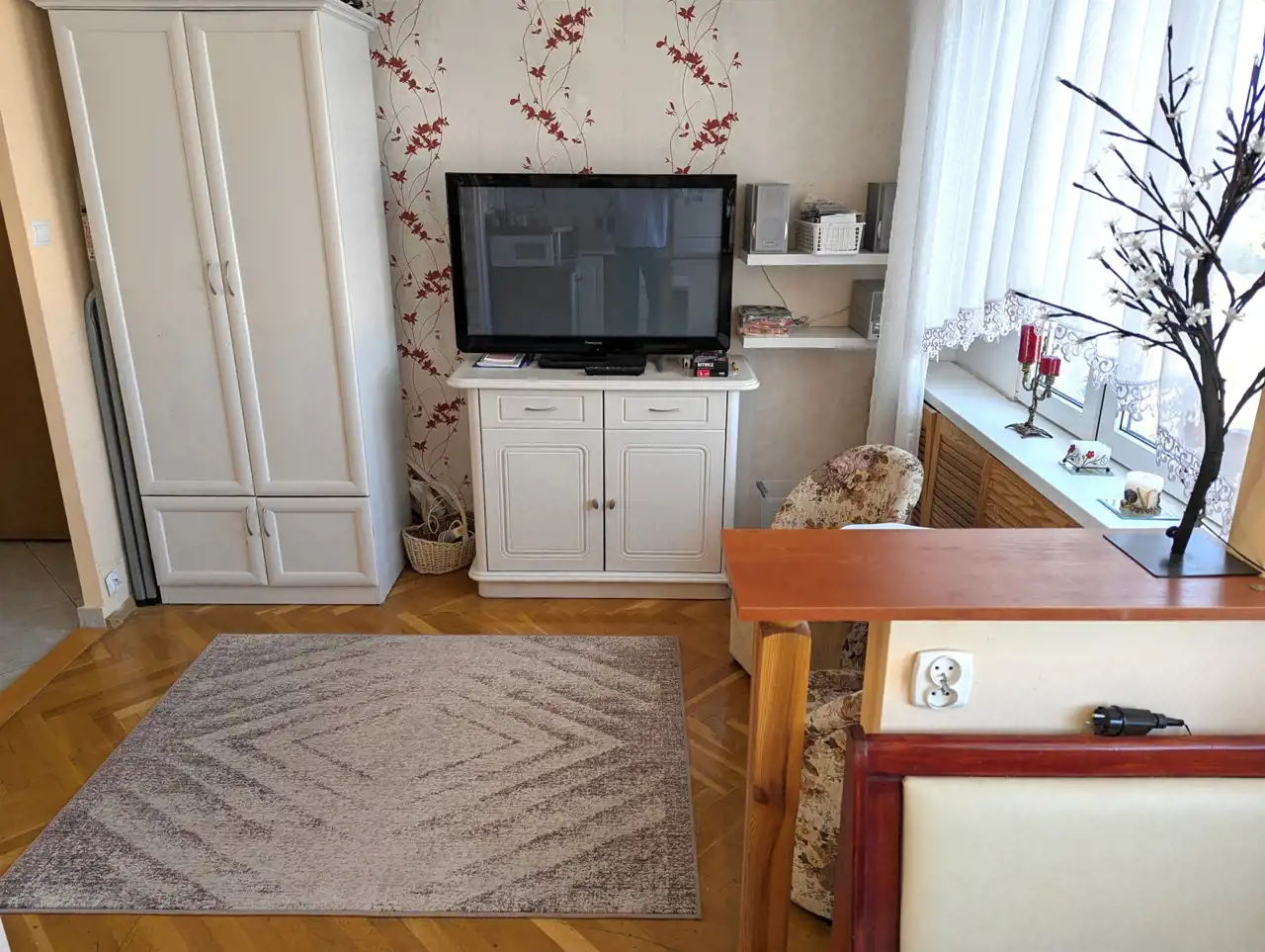 Z okien widoczna piękna panorama osiedla, otaczających bloki terenów zielonych, balsam dla zmęczonych, na przykład od pracy z komputerem, oczu.