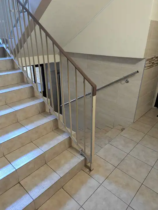 Odnowiona, czysta klatka schodowa.