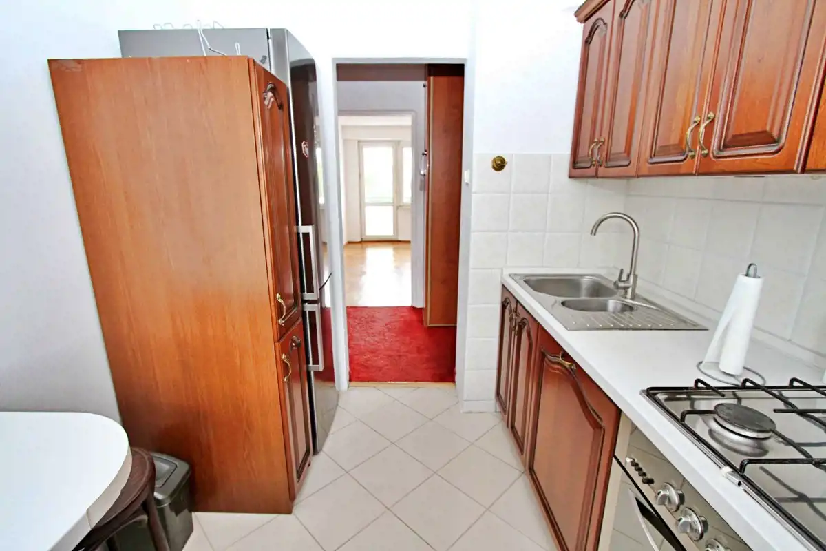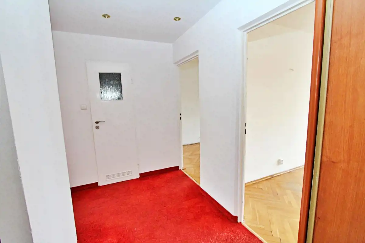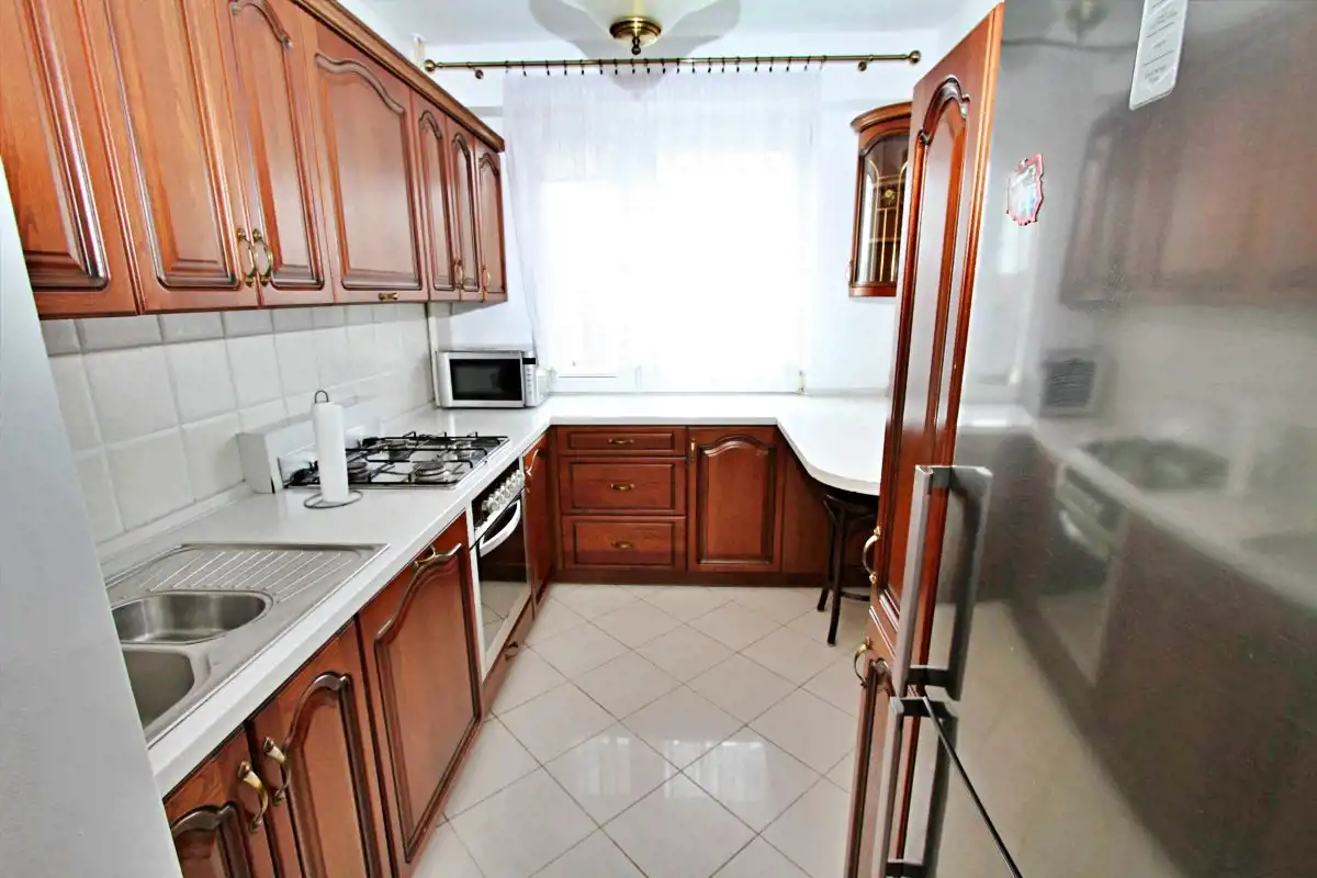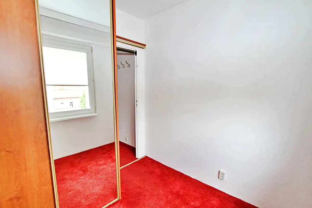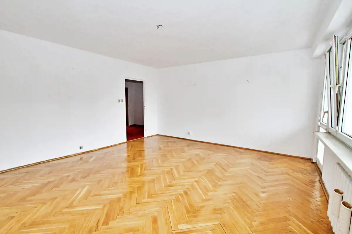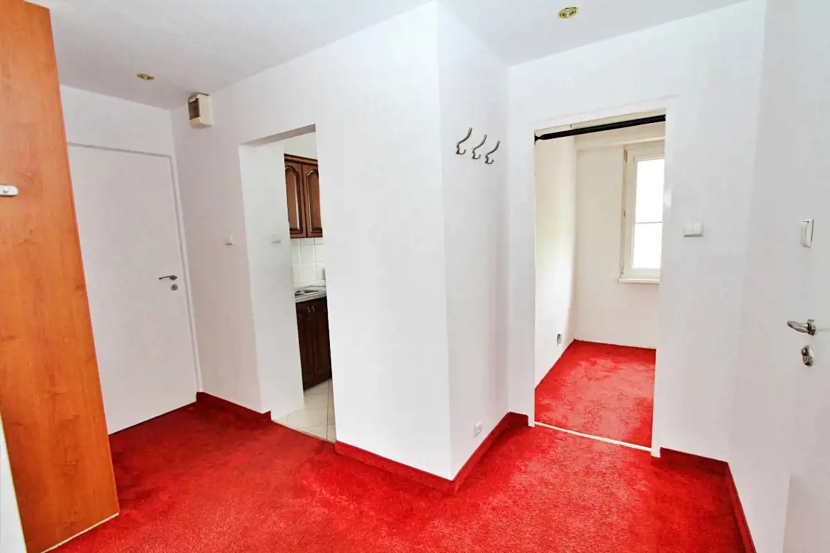 Mieszkanie jest w stanie do własnej aranżacji, co daje nowemu właścicielowi możliwość urządzenia wnętrza według własnego gustu. Ściany zostały odświeżone, w przedpokoju położono gładź. Na podłogach znajdują się: parkiet, wykładzina, a w łazience i kuchni – kafle.W cenie zostaje zabudowa kuchenna (w tym zmywarka) oraz pralka w łazience + szafa w pokoju.