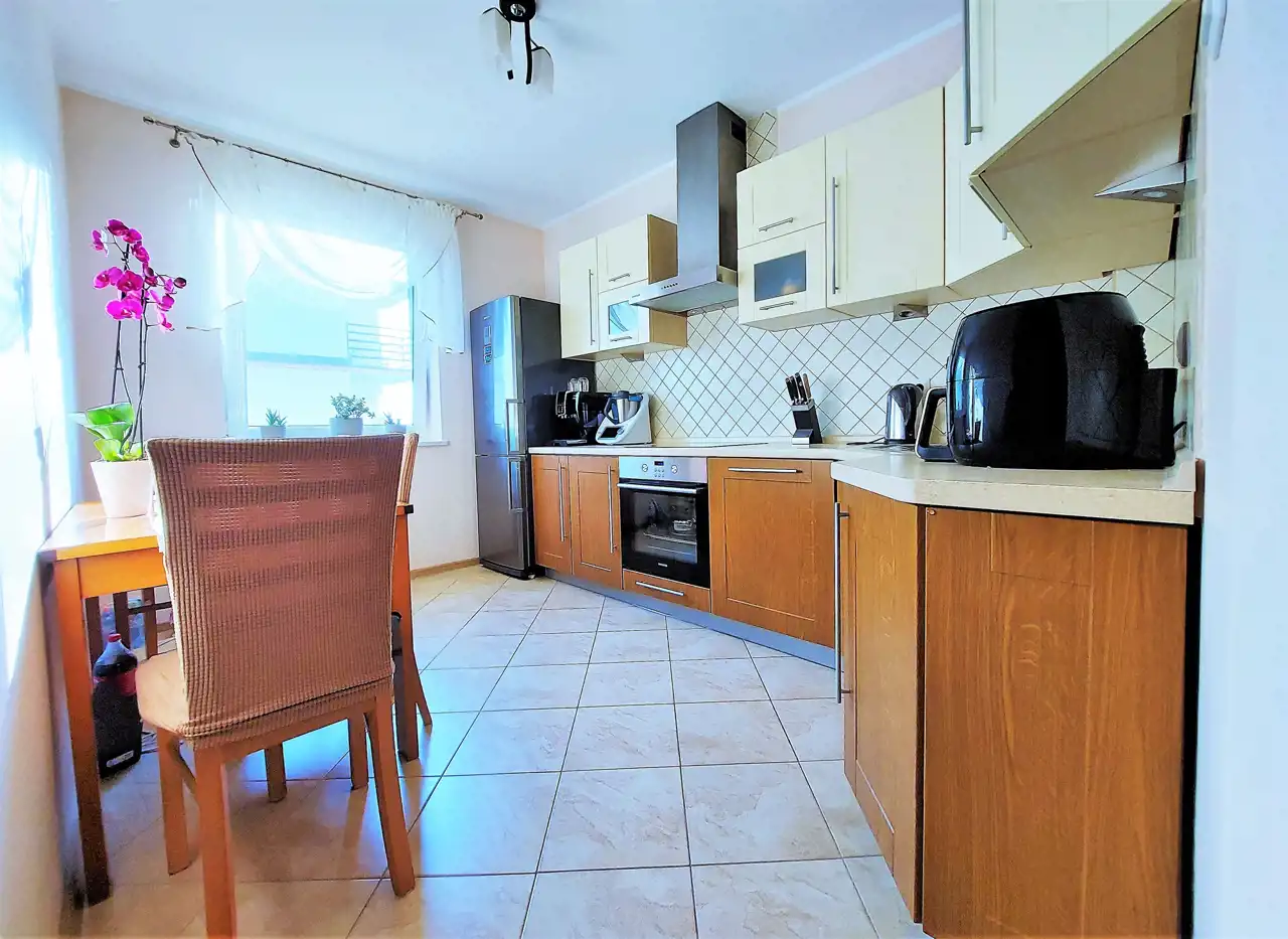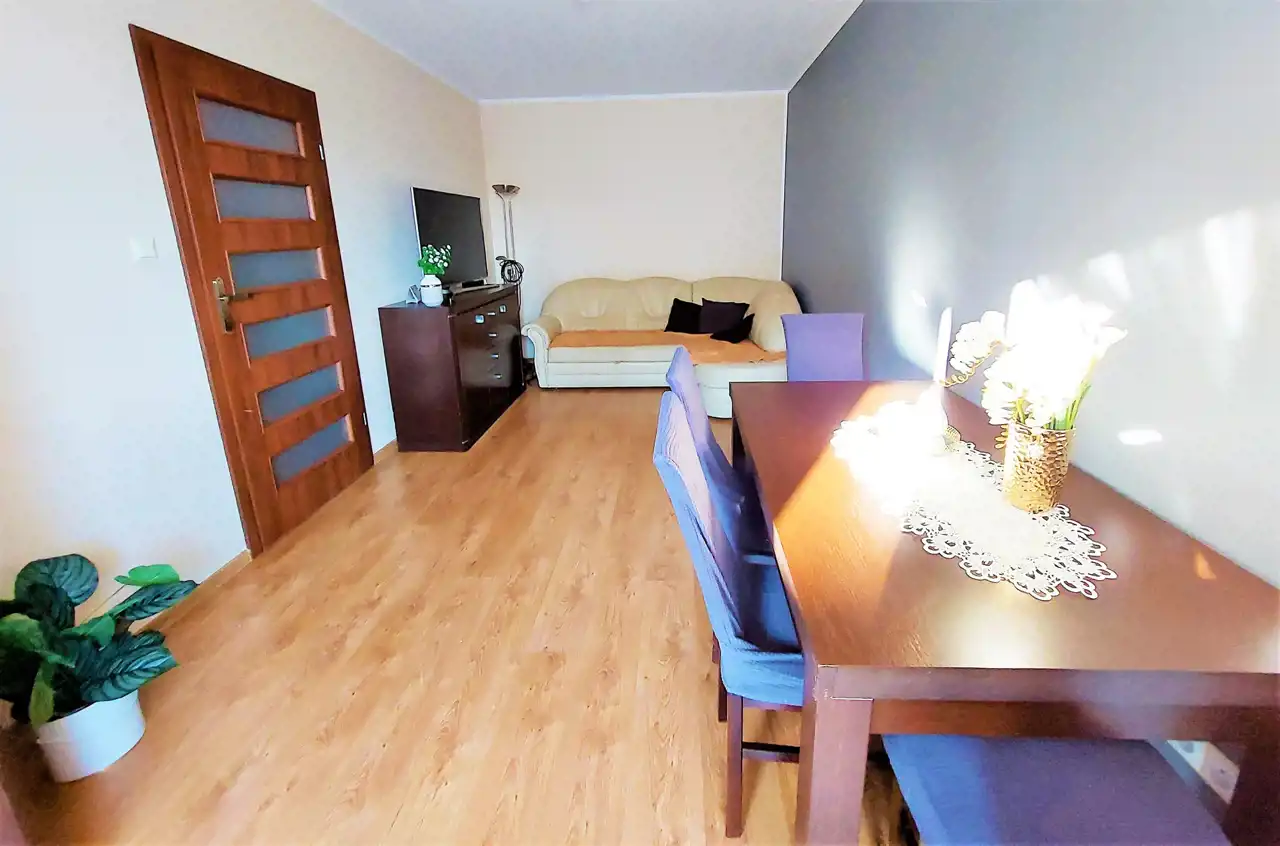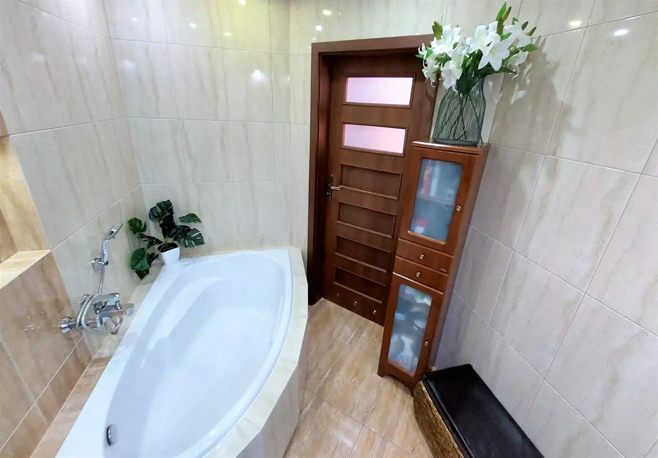 Apartament zaaranżowany jest w stylu klasycznym, gdzie dominują stonowane kolory i naturalne materiały. Rozmieszczenie pomieszczeń zostało zoptymalizowane. Jest funkcjonalne, co umożliwia pełne wykorzystanie powierzchni i duże możliwości aranżacji wnętrza. Mowa tutaj o możliwość zamontowania schodów i przekształcenia komórki, która znajduje się bezpośrednio nad mieszkaniem na dodatkową sypialnię z balkonem (został wykonany projekt). Do mieszkania przynależy piwnica zlokalizowana w podziemiu budynku. Dodatkowo w cenie mieszkania znajduje się wydzierżawione i opłacone do maja 2026 roku, miejsce parkingowe na terenie zamkniętym osiedla.