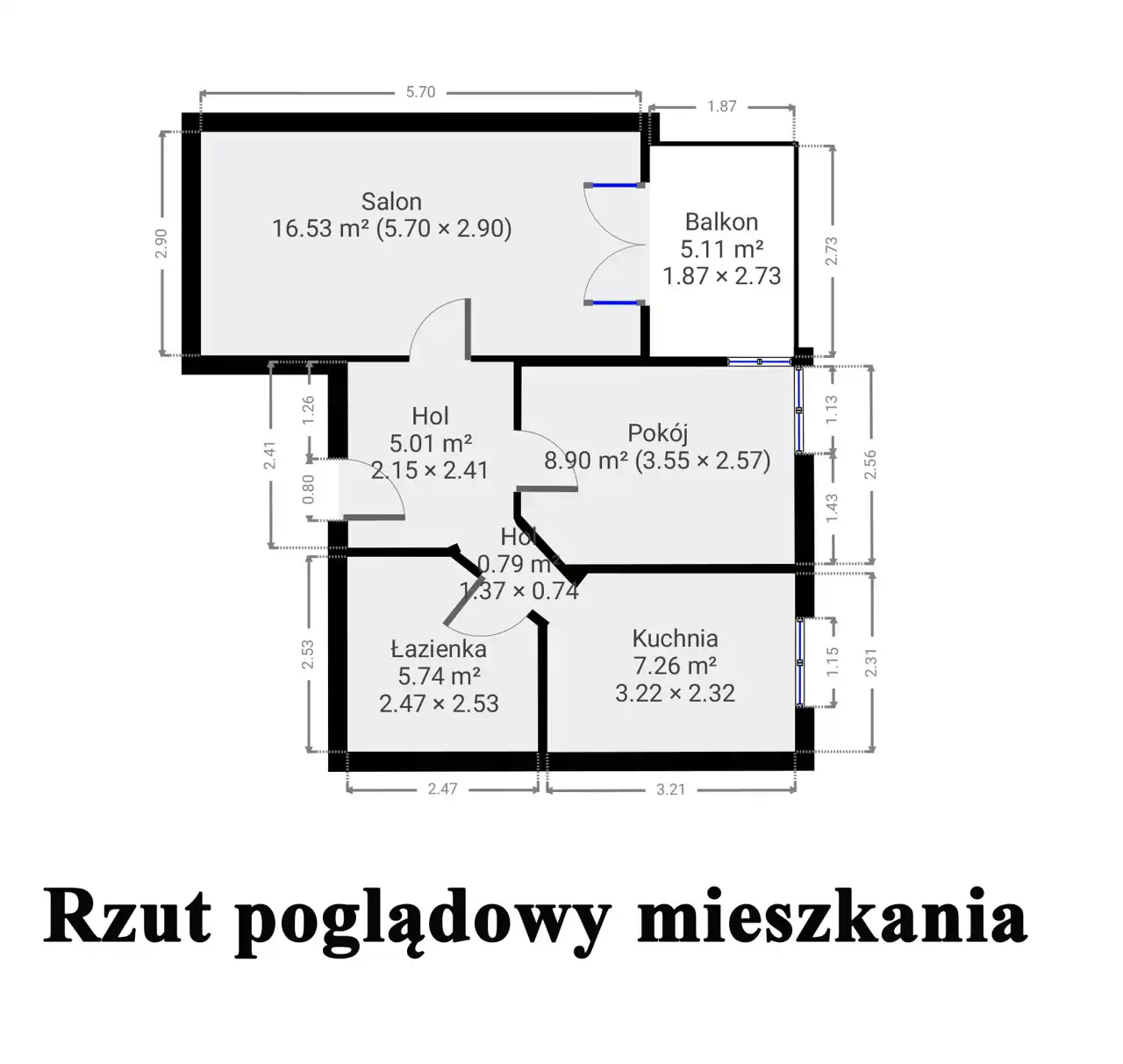 - Charakterystyka mieszkania 57.68 m2, 2 pokoje