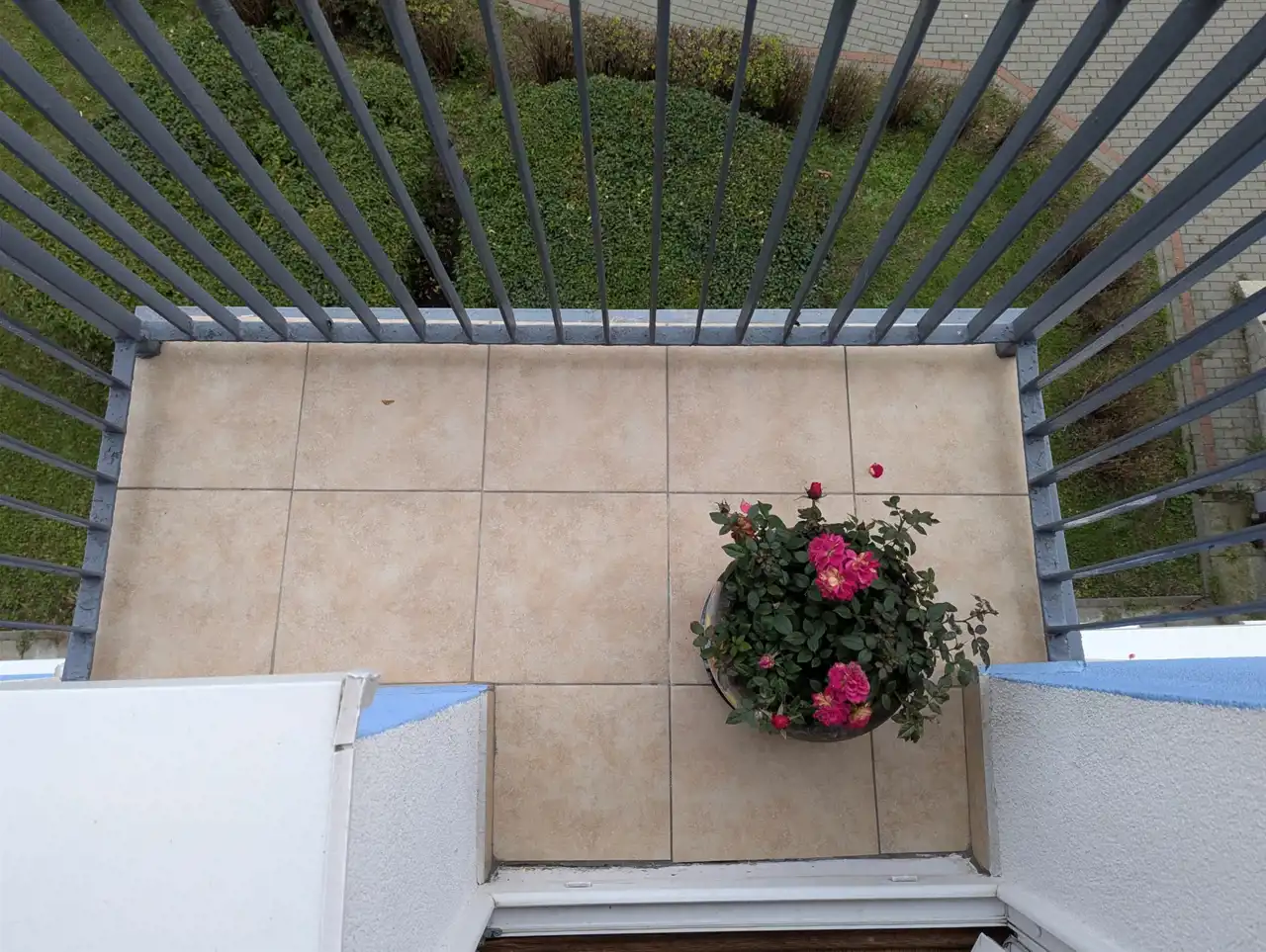 Balkon także został starannie wyłożony mrozoodpornym gresem, świeżo pomalowana balustrada.