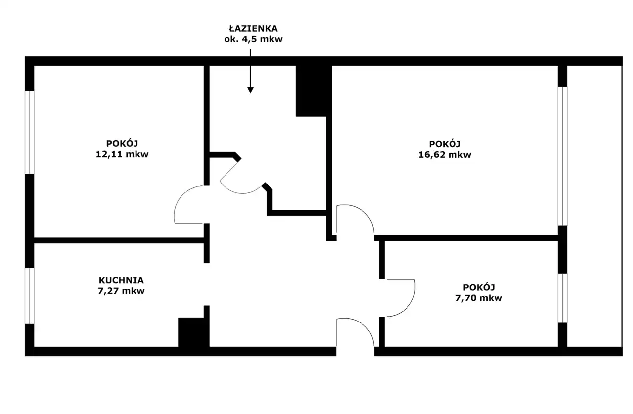 Mieszkanie 3-pokojowe o powierzchni 60,10 mkw, położone na 3. piętrze bloku 4-piętrowego, na Osiedlu Południe Jednostka E, we Włocławku - spółdzielcze własnościowe prawo do lokalu, z założoną księgą wieczystą, z dużym balkonem loggią - na długości dwóch pokoi, dwustronne, jasne, przestrzenne, duży pokój o powierzchni 16,62 mkw, mniejszy 12,11 mkw, najmniejszy 7,70 mkw, kuchnia o powierzchni 7,27 mkw + duża łazienka z WC, przedpokój.