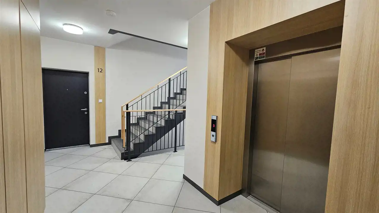 Blok 5 piętrowy, 2 klatkowy, każda z klatek wyposażona w windę. Teren osiedla osiedla ogrodzony.