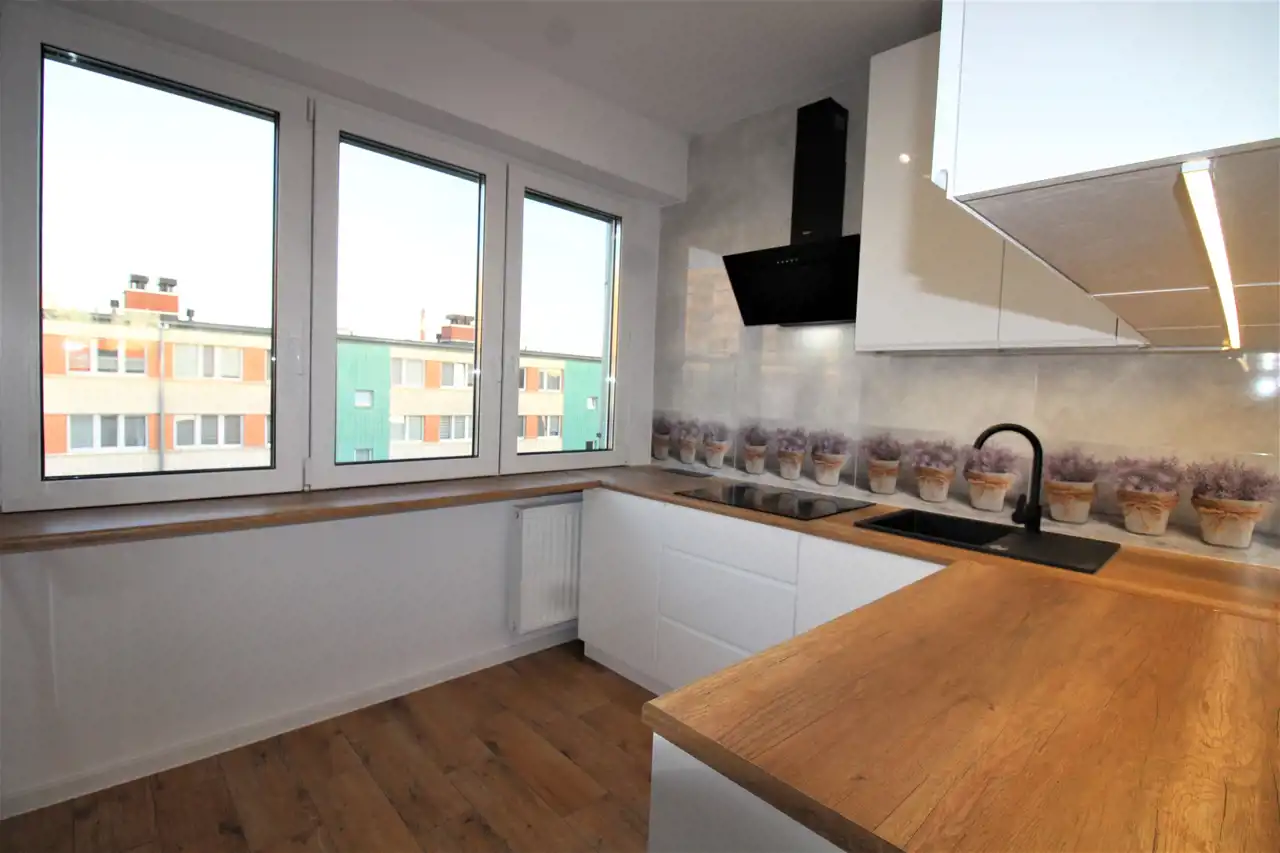 Mieszkanie przeszło kapitalny remont w 2025 roku, w trakcie którego wymieniono wszystkie instalacje, grzejniki, drzwi, podłogi, okna.