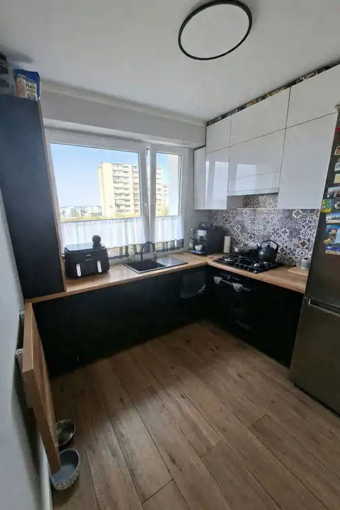 • Kuchnia umeblowana – pozostaje zabudowa kuchni, gotowa do użytkowania.