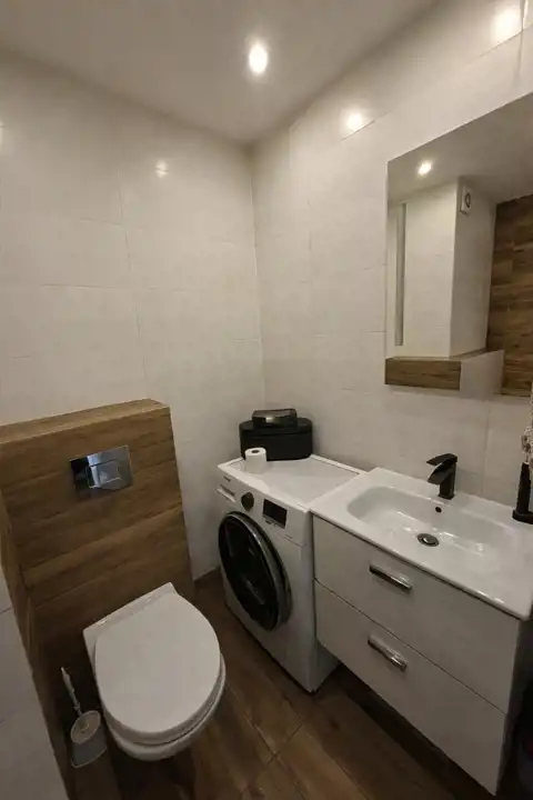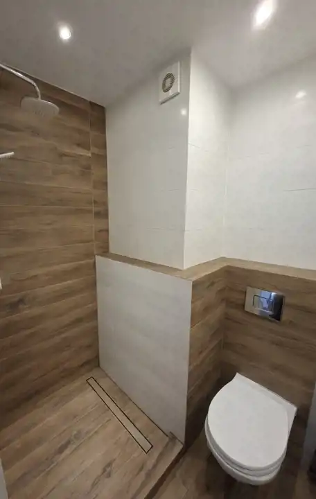 • Łazienka razem z WC – wygodne i funkcjonalne rozwiązanie.