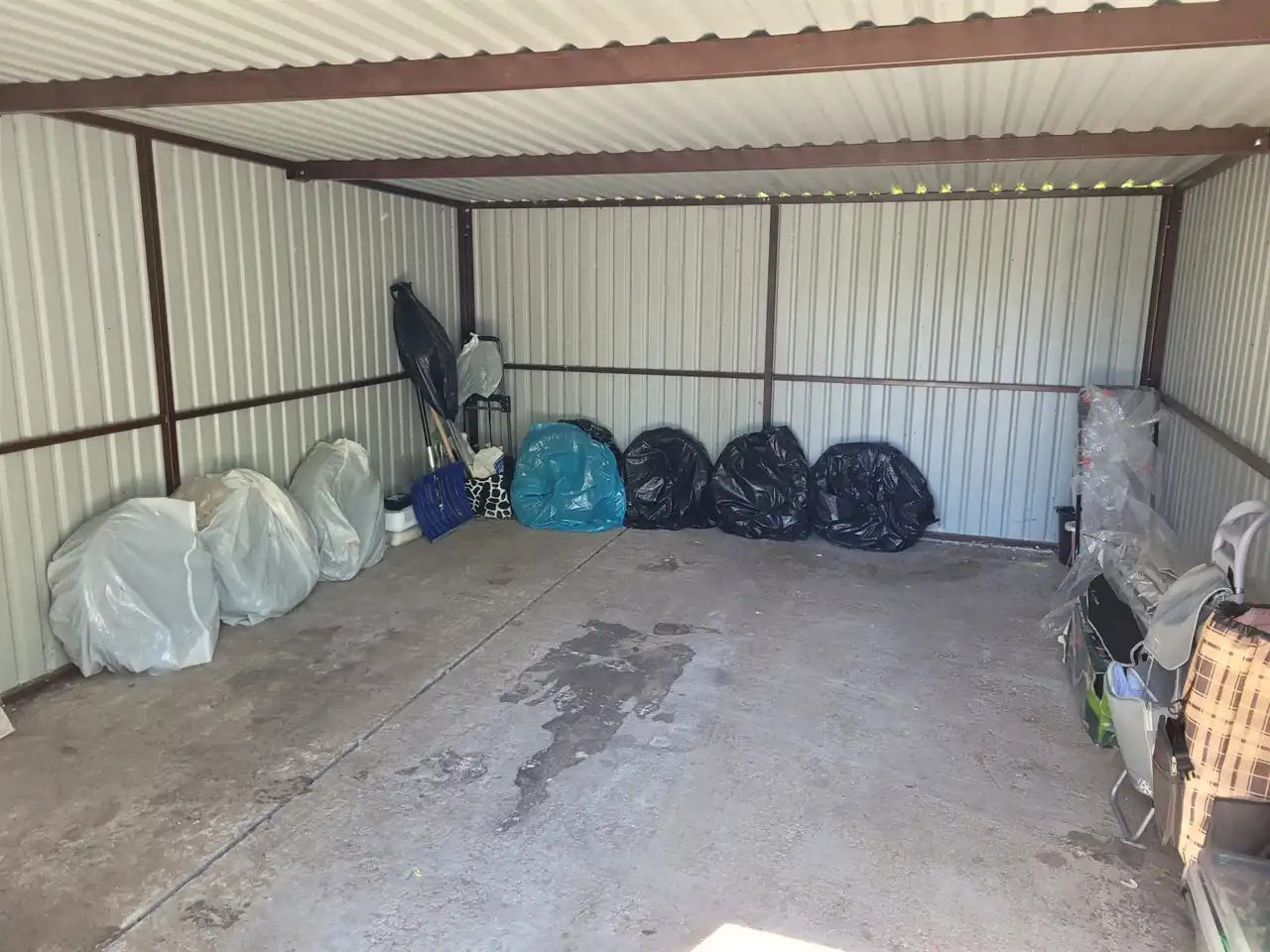 Może być z garażem-blaszakiem o powierzchni 20 mkw (4 m x 5 m), posadowionym na betonowym postumencie przed budynkiem.