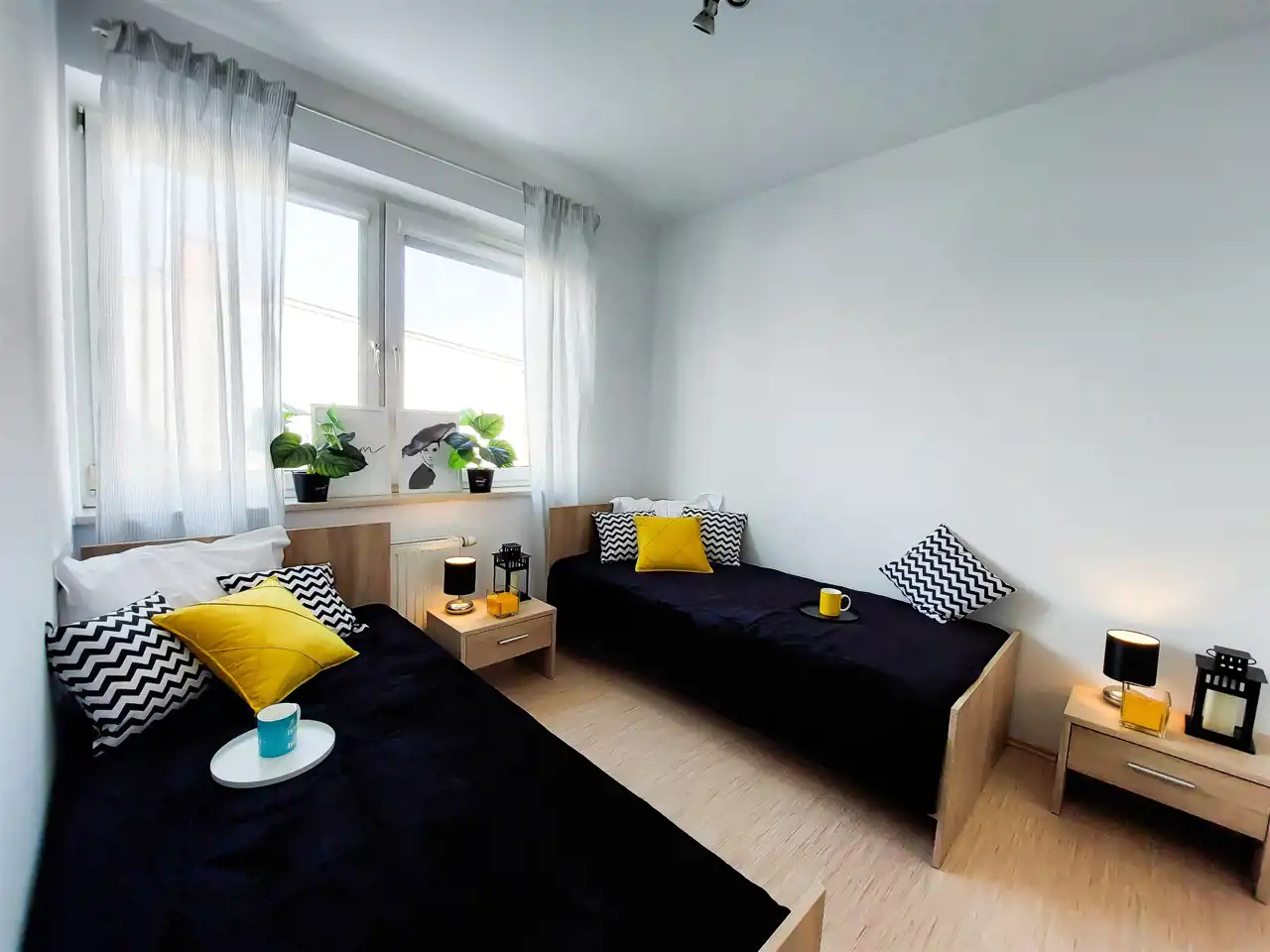 Pokój nr 4: dwa łóżka, dwie szafki nocne.