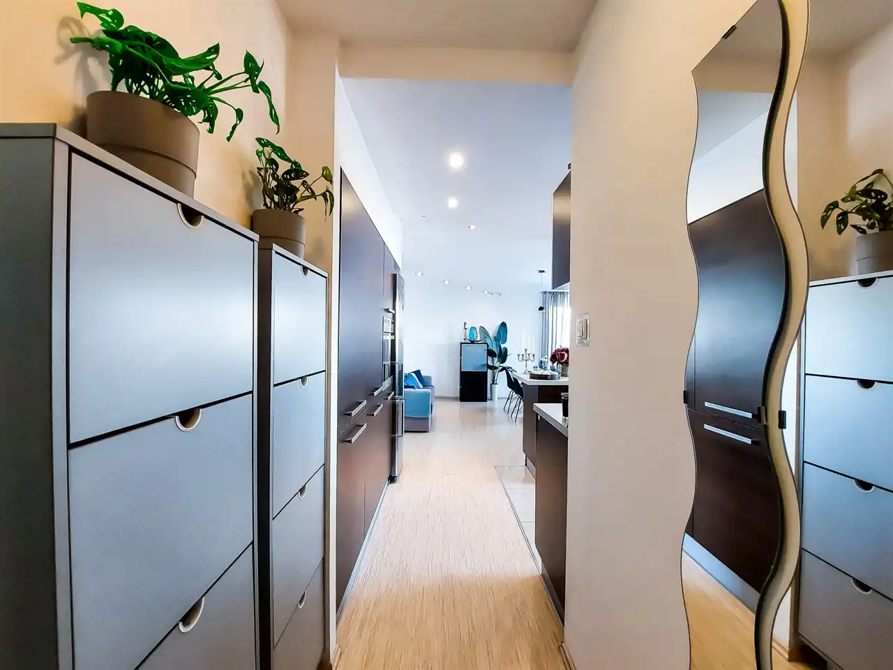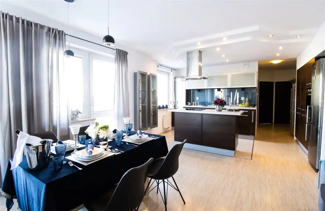 - Wystrój wnętrz: to połączenie dwóch stylów klasycznego z nowoczesnym. Dzięki temu wnętrze jest eleganckie, ciekawe i panuje w nim harmonia.