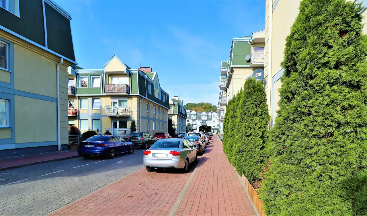 - Położenie osiedla ma wielkomiejski charakter. W pobliżu znajdują się również najważniejsze obiekty użyteczności publicznej (sąd, kancelarie notarialne, prawnicze itp.) a także przedszkola, szkoły, przychodnie lekarskie, sklepy, siłownie, restauracje oraz inne lokale usługowe.