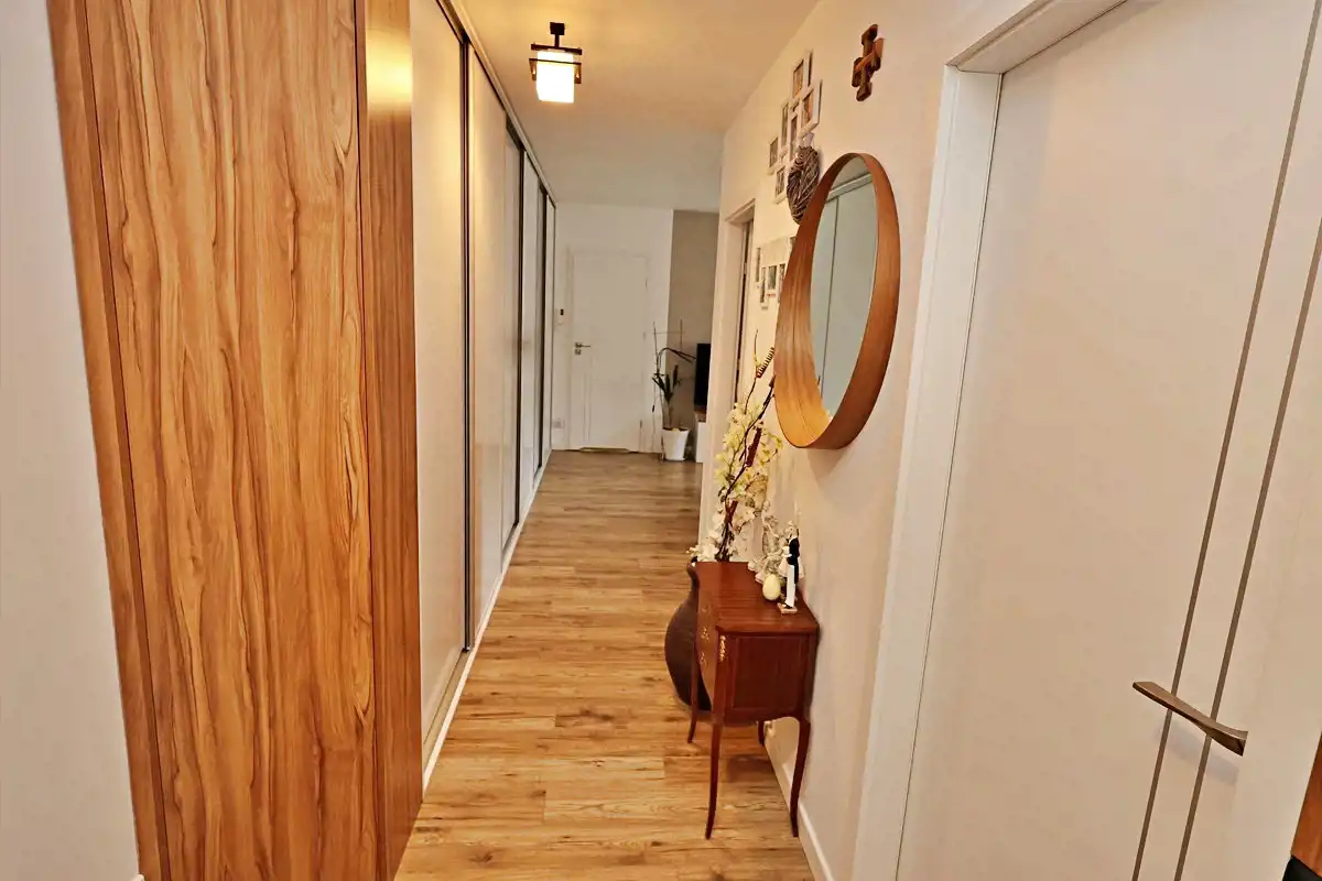 Mieszkanie nowocześnie urządzone , gotowe do wprowadzenia. Nie wymaga nakładów finansowych. Okna PCV z żaluzjami " dzień -noc". Na podłogach w pokojach panele . Przedpokój w zabudowie, siedzisko plus szafy .Na pograniczu przedpokoju i salonu 5 metrowa szafa w zabudowie. Aneks kuchenny z nowoczesną zabudową, punkty świetlne pod szafkami, sprzęt AGD ( piekarnik, okap, zmywarka, lodówka) wydzielone miejsce na stolik z krzesłami. Przestronny salon z wyjściem na duży balkon.