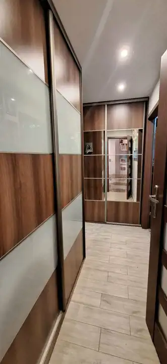 Drugi – komunikacyjny, wyposażony w dwie potężne szafy w zabudowie (jedna 3-skrzydłowa, druga 2-skrzydłowa), które pomieszczą wszystko, co niezbędne.